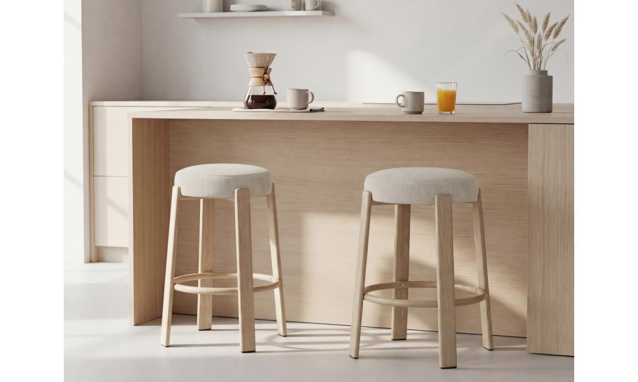 Bergen Bar Stool Beige/ Natural Set of 2