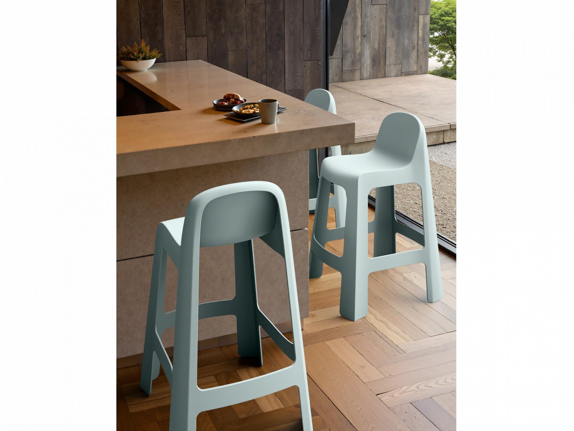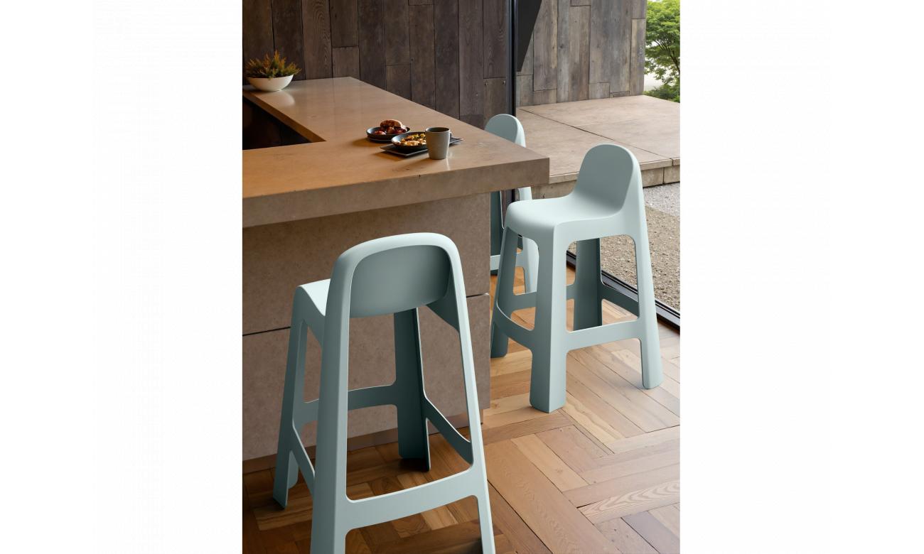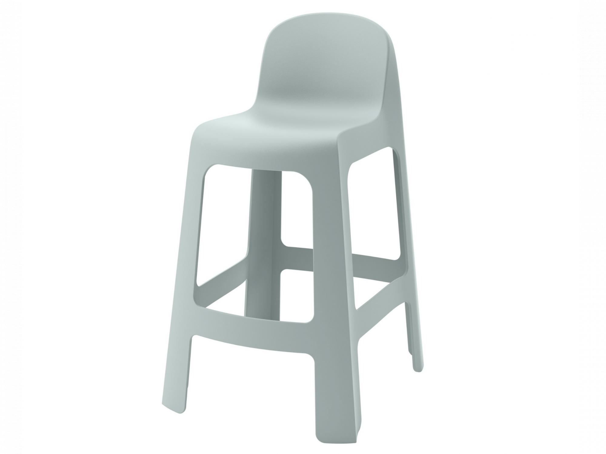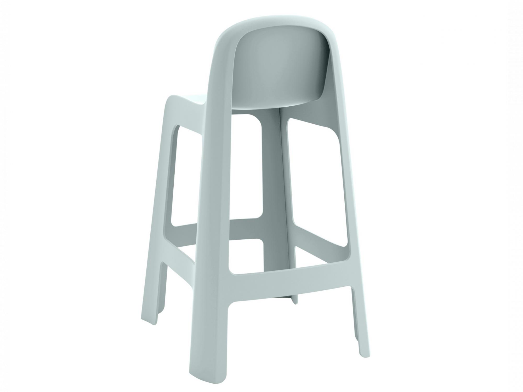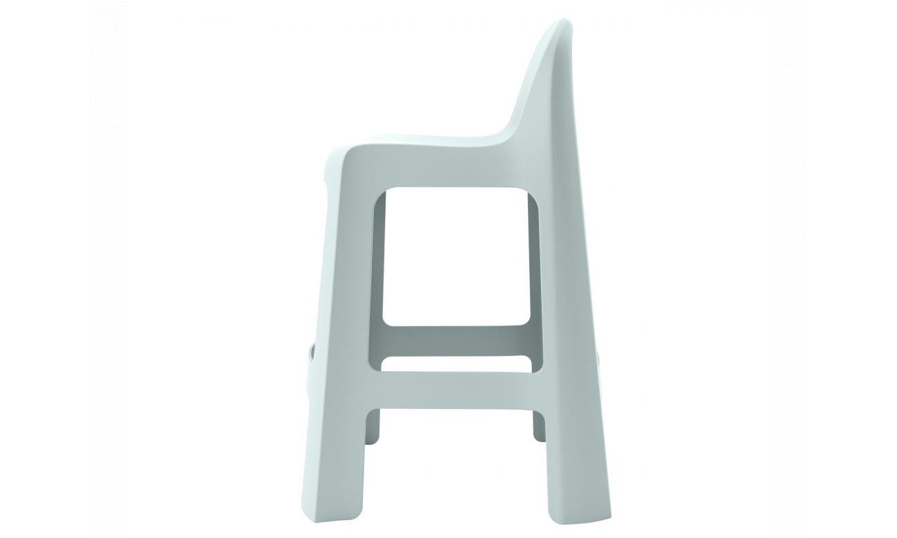 A minimalist outdoor bar stool designed for comfort and durability. The curved seat and lightweight all-plastic build make it both practical and stylish for outdoor bar settings.