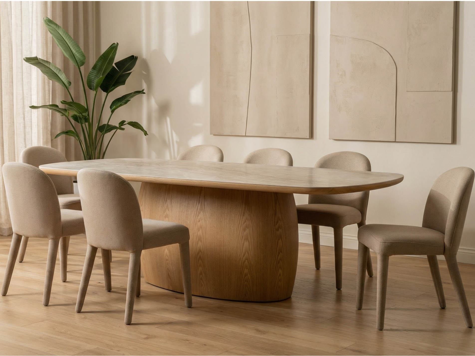 From dining and occasional tables to storage and media units, each piece reflects architectural clarity, balanced proportions, and refined material contrast.