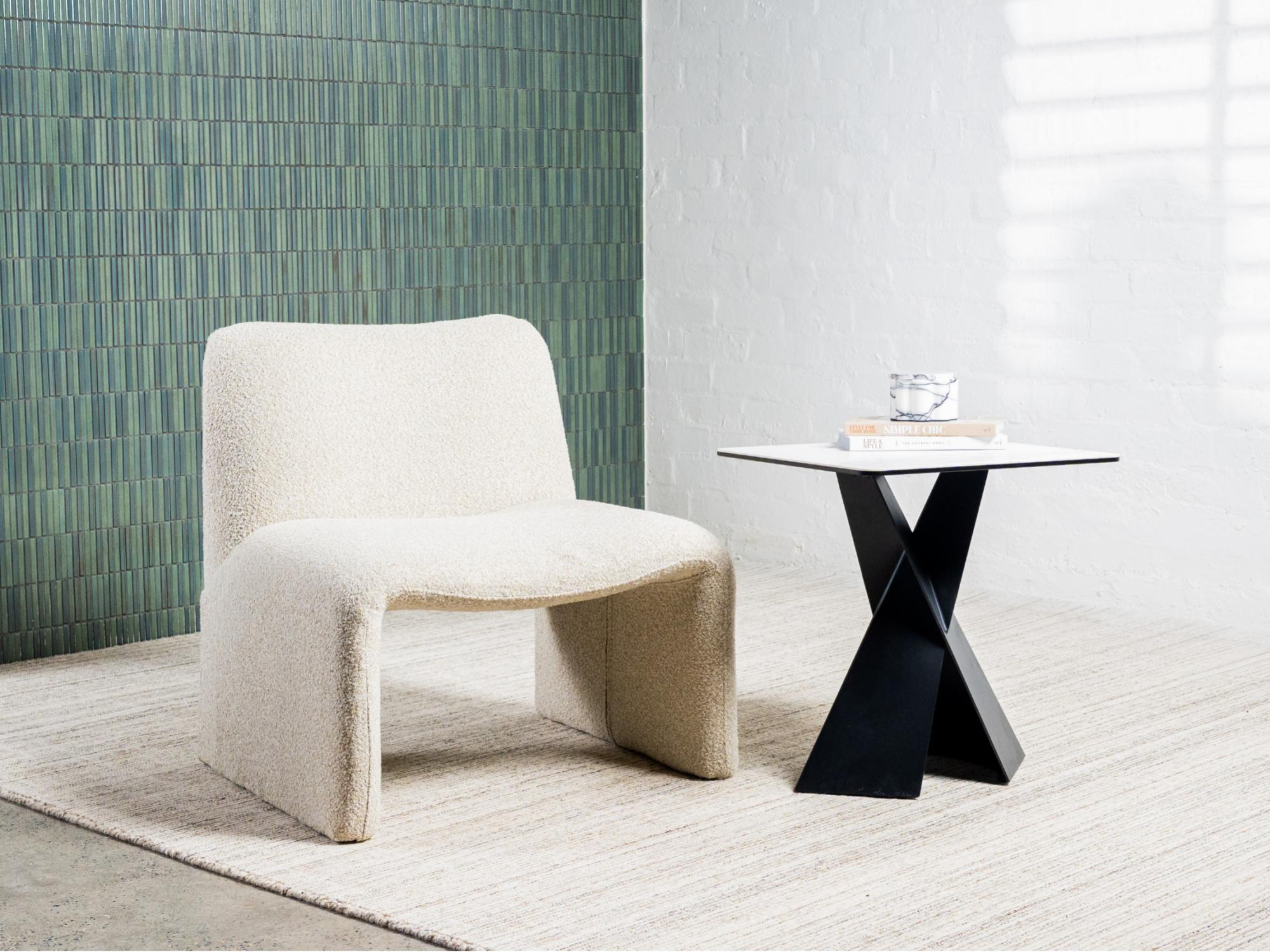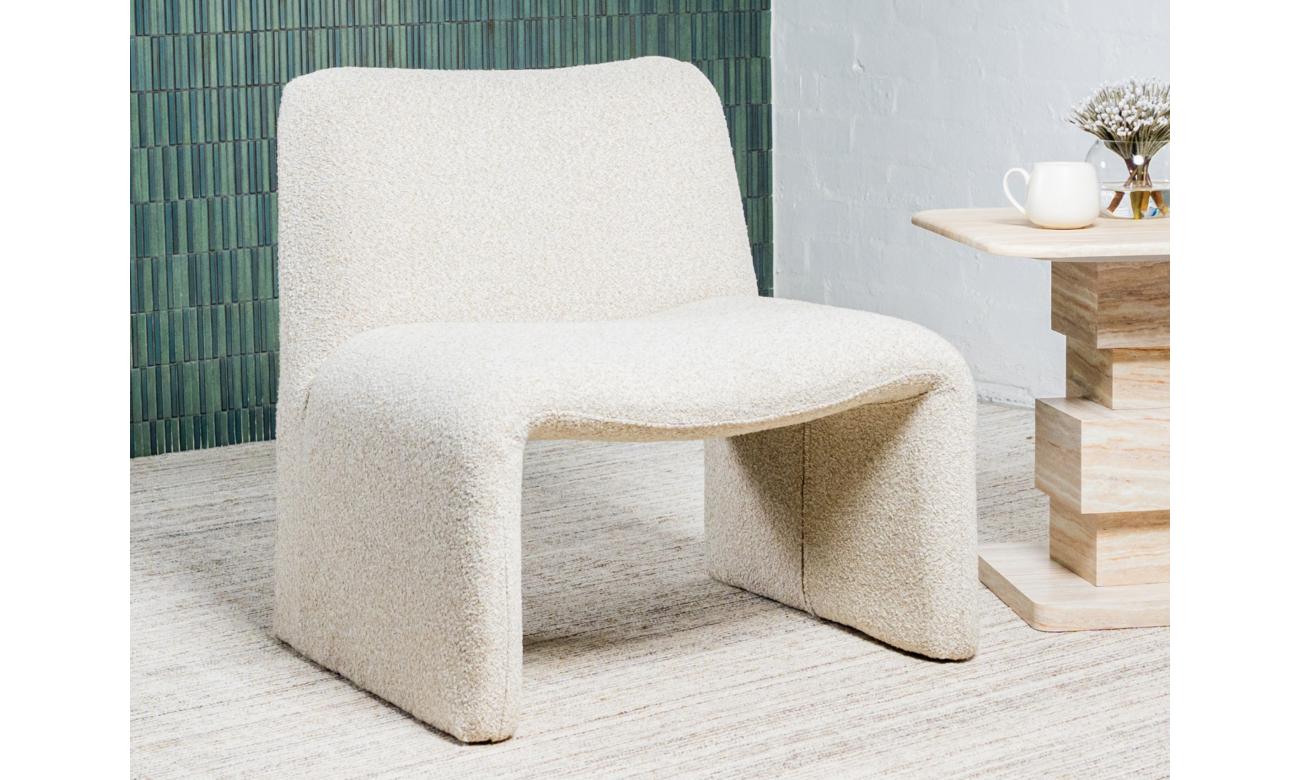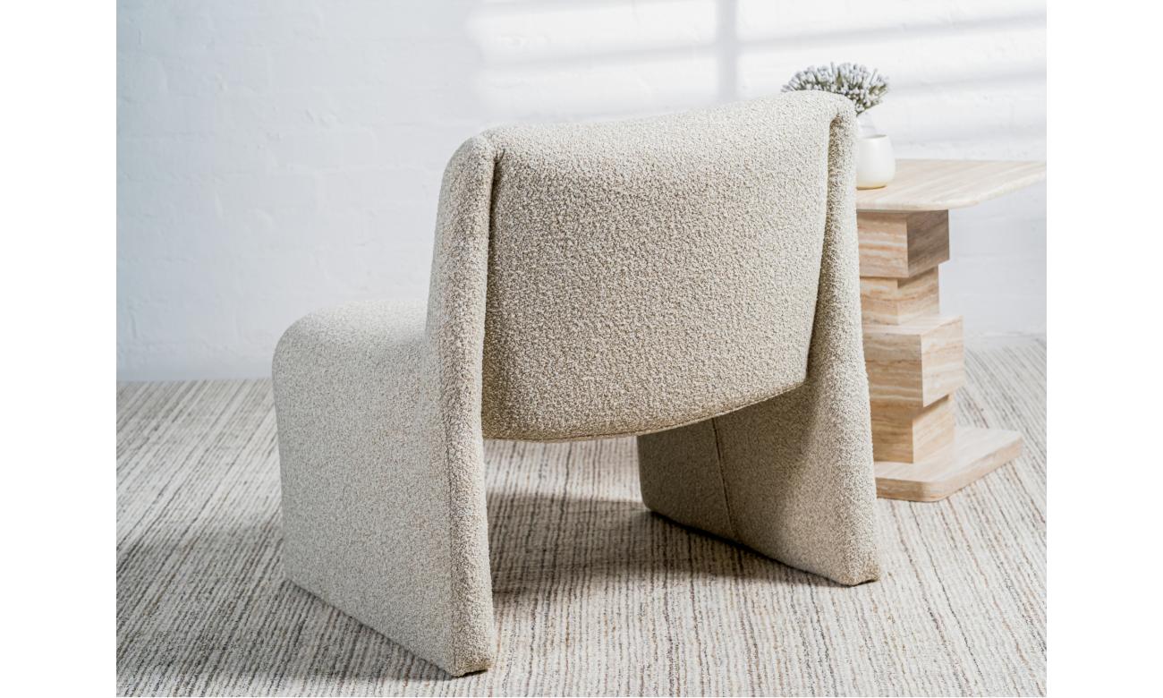 The Calais chair makes a striking statement with its sculptural silhouette and inviting curves. Now introduced in a soft beige boucle fabric, it offers both warmth and texture, bringing a fresh, contemporary touch to this iconic design.