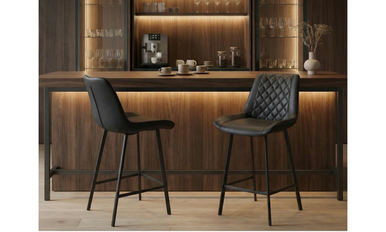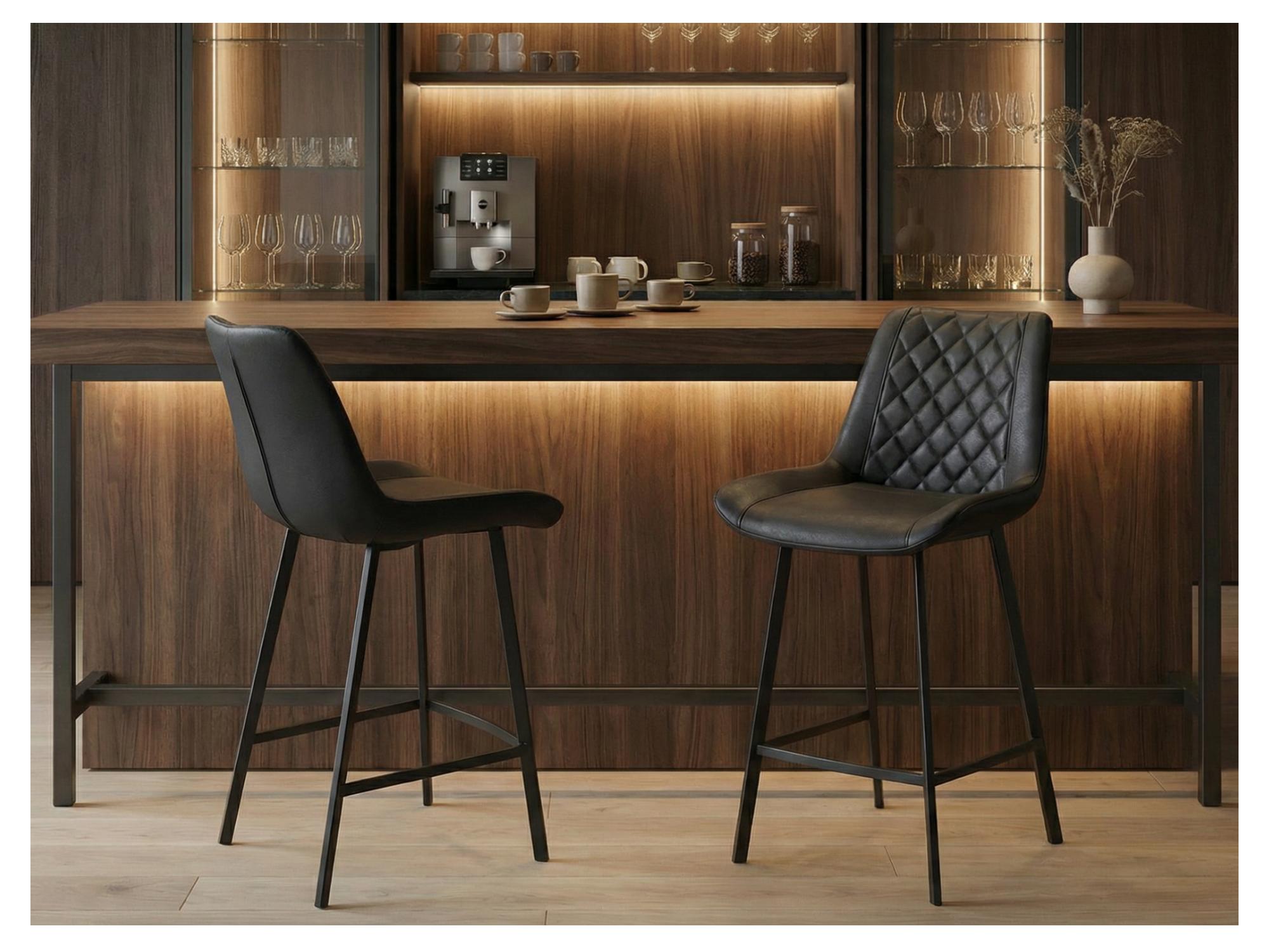 Introducing the Flynn PU Barstool, where retro meets modern and comfort meets style. This sleek and sophisticated barstool is the perfect addition to any home, bar, or kitchen. Its diamond stitched seat pattern adds a touch of vintage charm, while its easy to clean PU cover ensures long lasting durability and convenience. The black painted frame gives off a contemporary look and let's not forget about the generous seat, providing you with ample space to sit back and relax, or to entertain your guests in comfort. Upgrade your space with the Flynn Barstool, the perfect blend of retro and contemporary design.