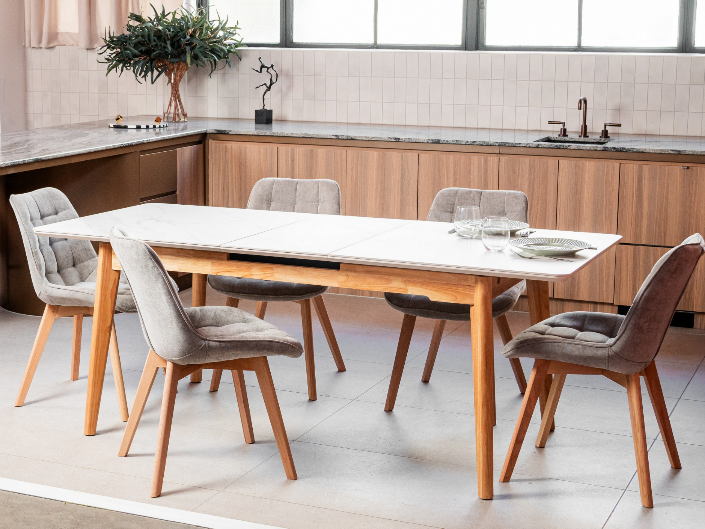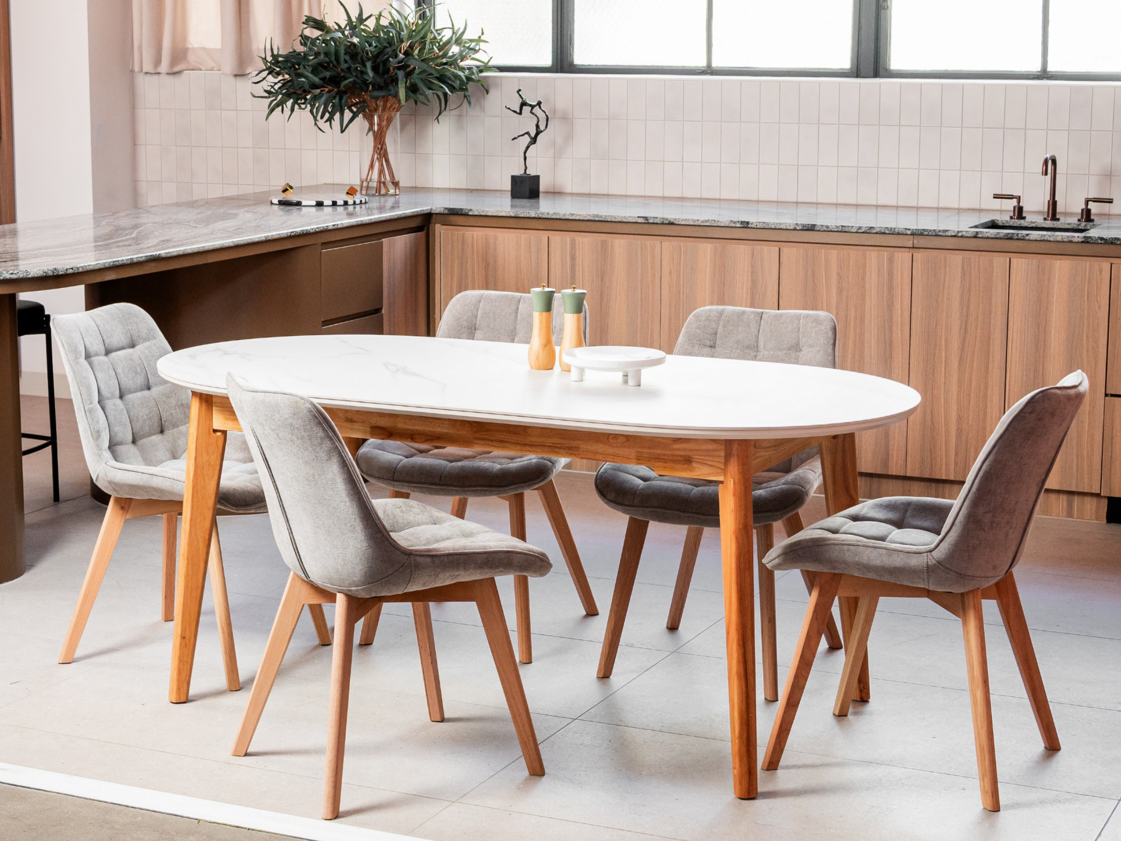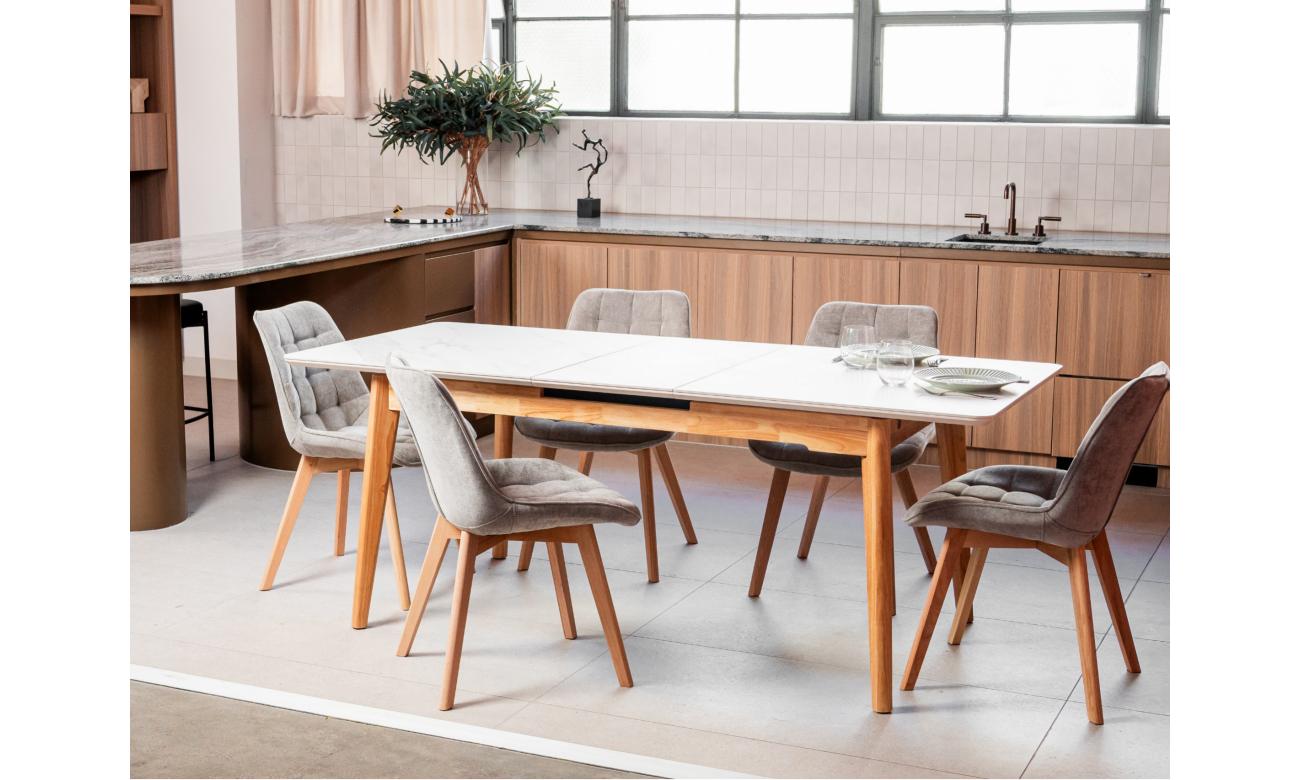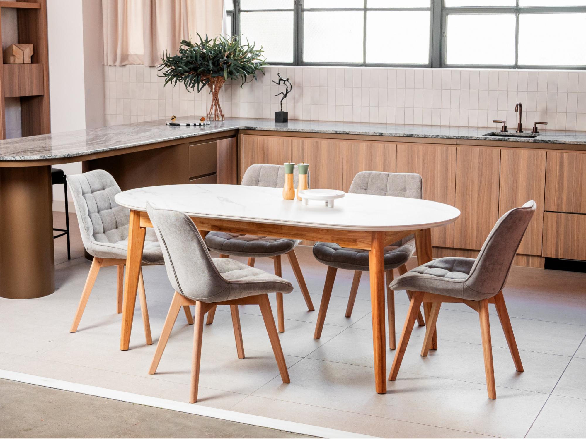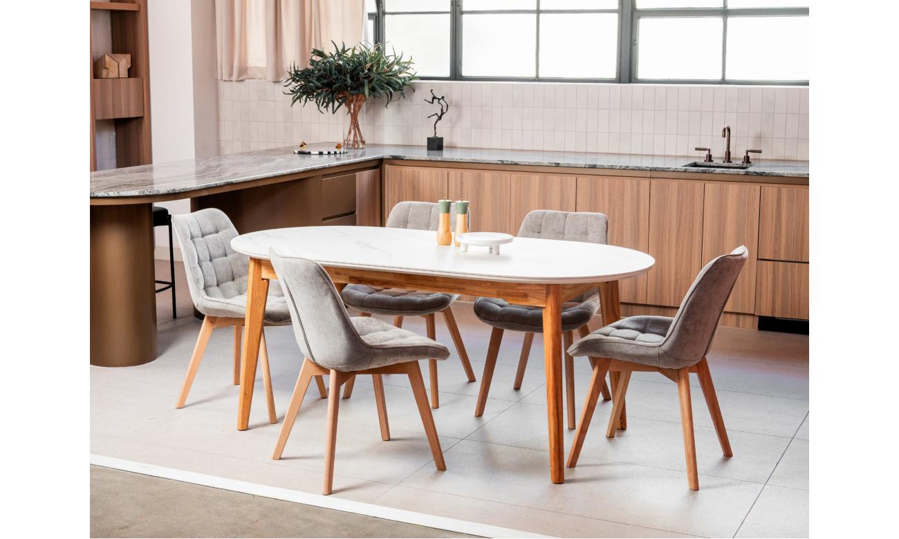 The Forest chair has been enhanced with new material options while keeping its timeless design. Now available in three variations — chenille fabric with solid oak wood legs in a natural finish, eco-leather with solid oak wood in a natural finish, and the original eco-leather with black powder-coated metal legs. This update offers greater versatility, allowing the Forest chair to suit both warm, natural interiors and sleek, modern spaces without compromising on comfort or style.