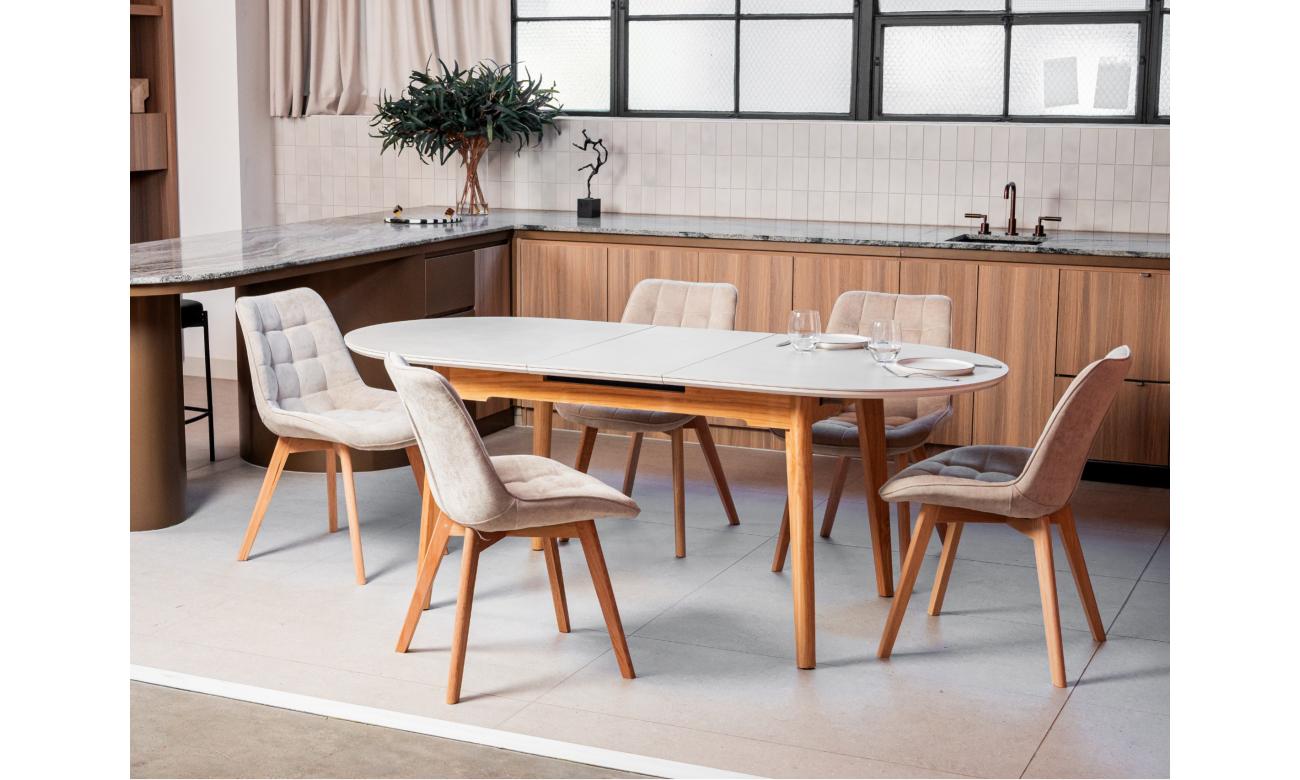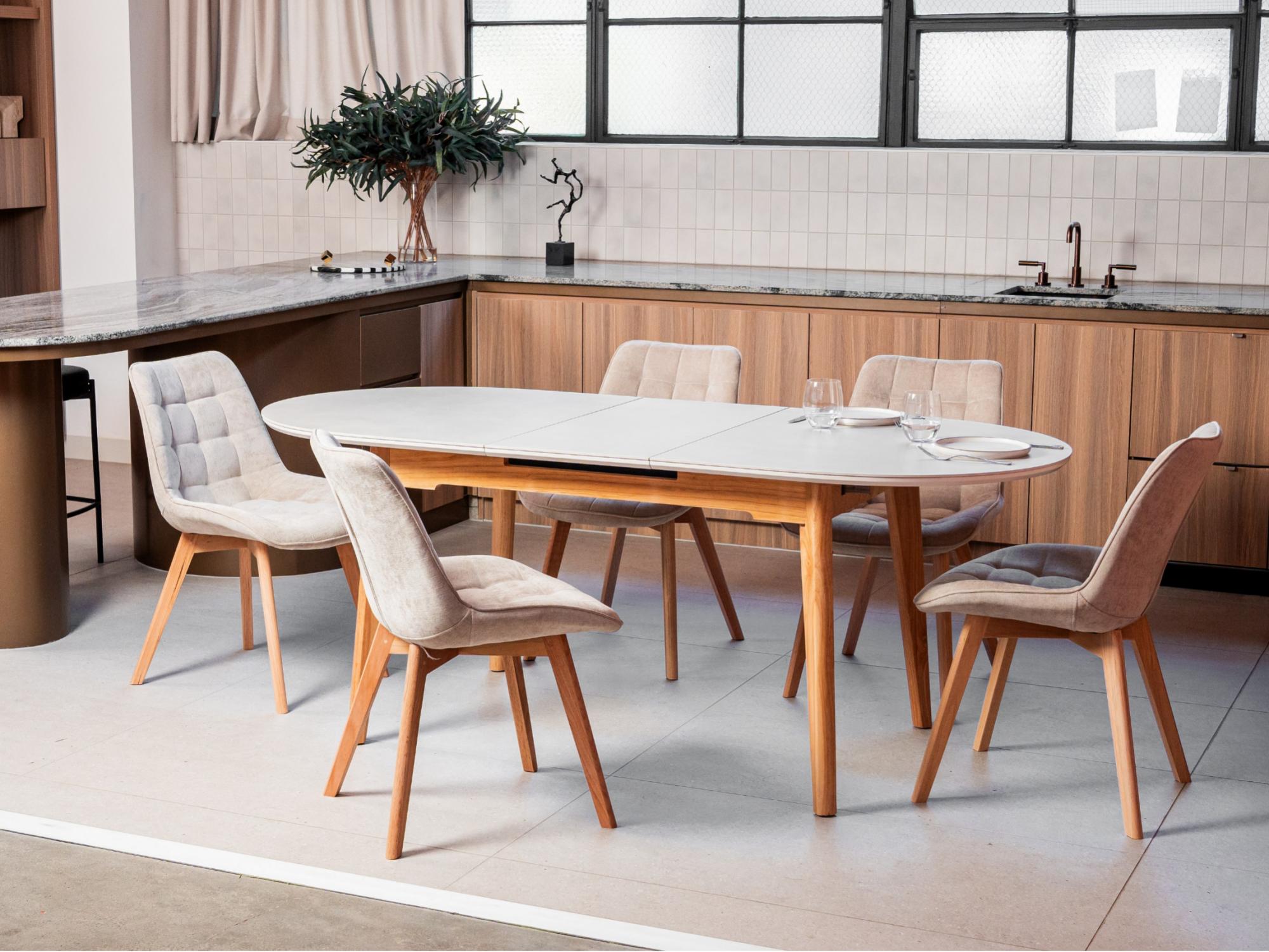 The Forest chair has been enhanced with new material options while keeping its timeless design. Now available in three variations — chenille fabric with solid oak wood legs in a natural finish, eco-leather with solid oak wood in a natural finish, and the original eco-leather with black powder-coated metal legs. This update offers greater versatility, allowing the Forest chair to suit both warm, natural interiors and sleek, modern spaces without compromising on comfort or style.