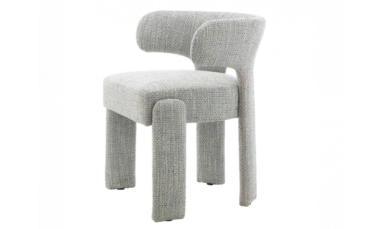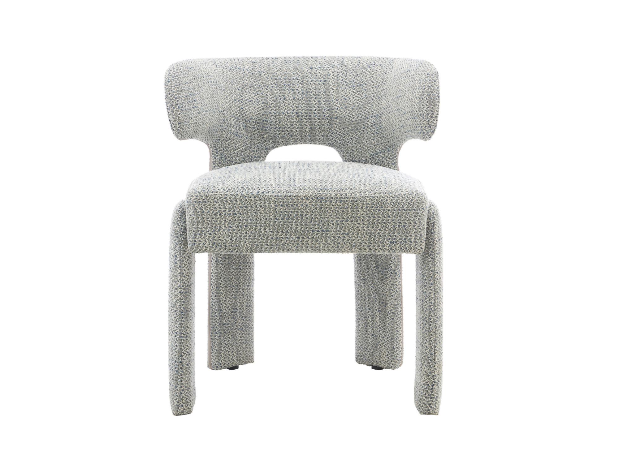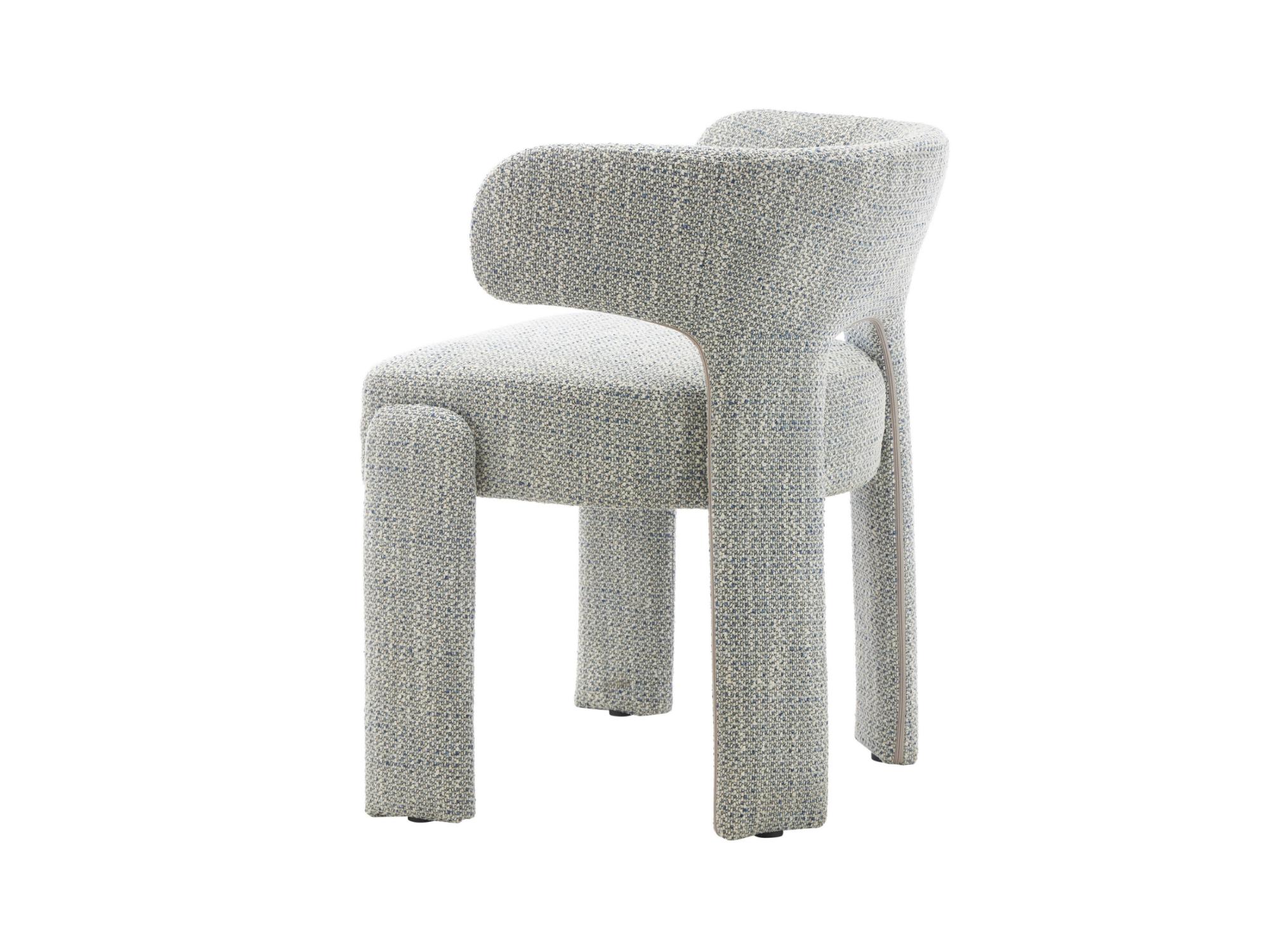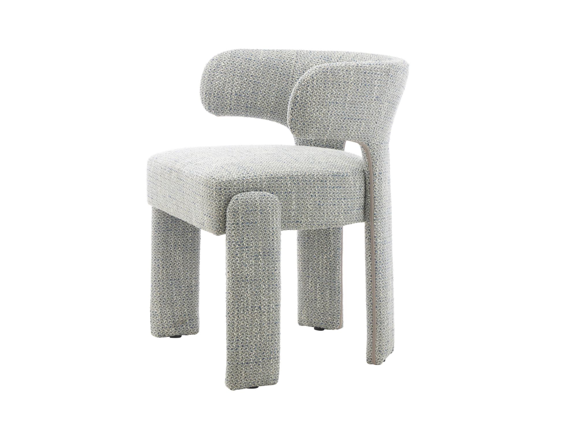 Designed for both comfort and presence, this fully upholstered dining chair brings a sense of quiet luxury to the dining space. Wrapped in a richly textured fabric, it offers a soft, tactile finish that enhances its refined silhouette.