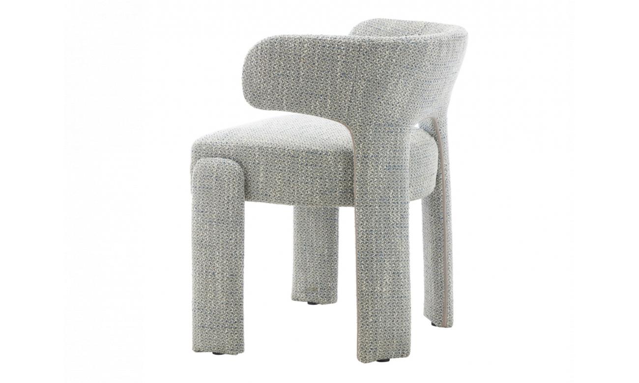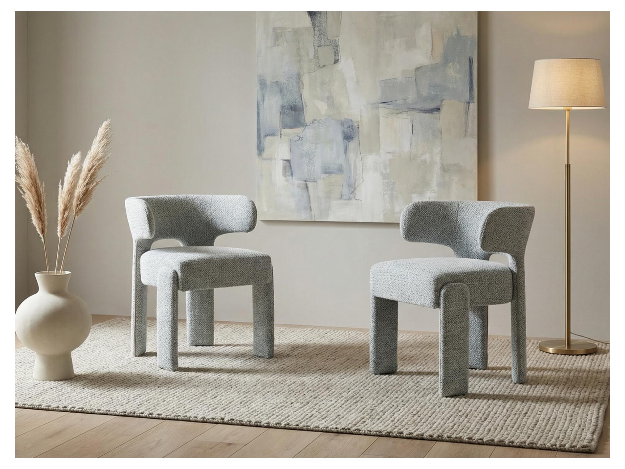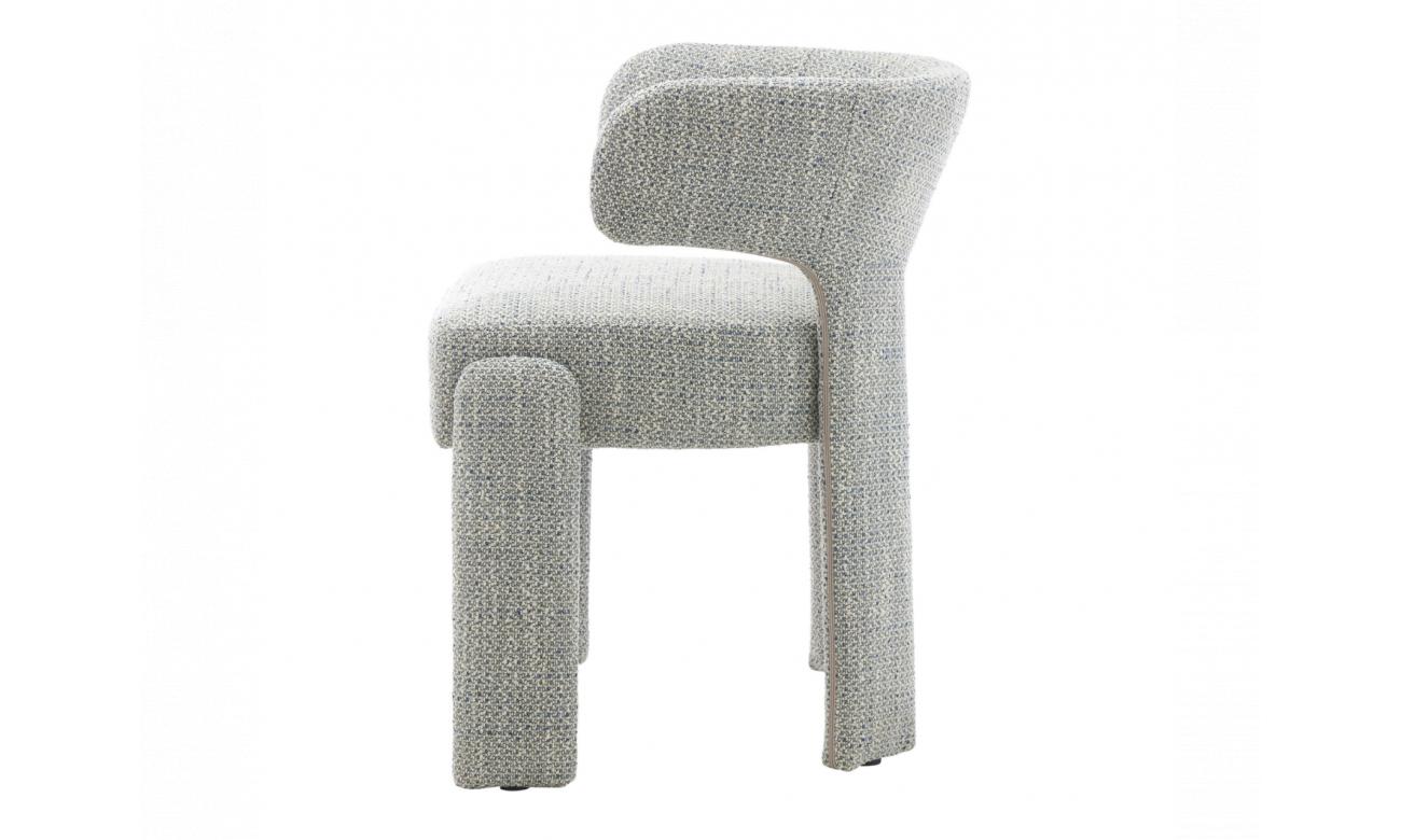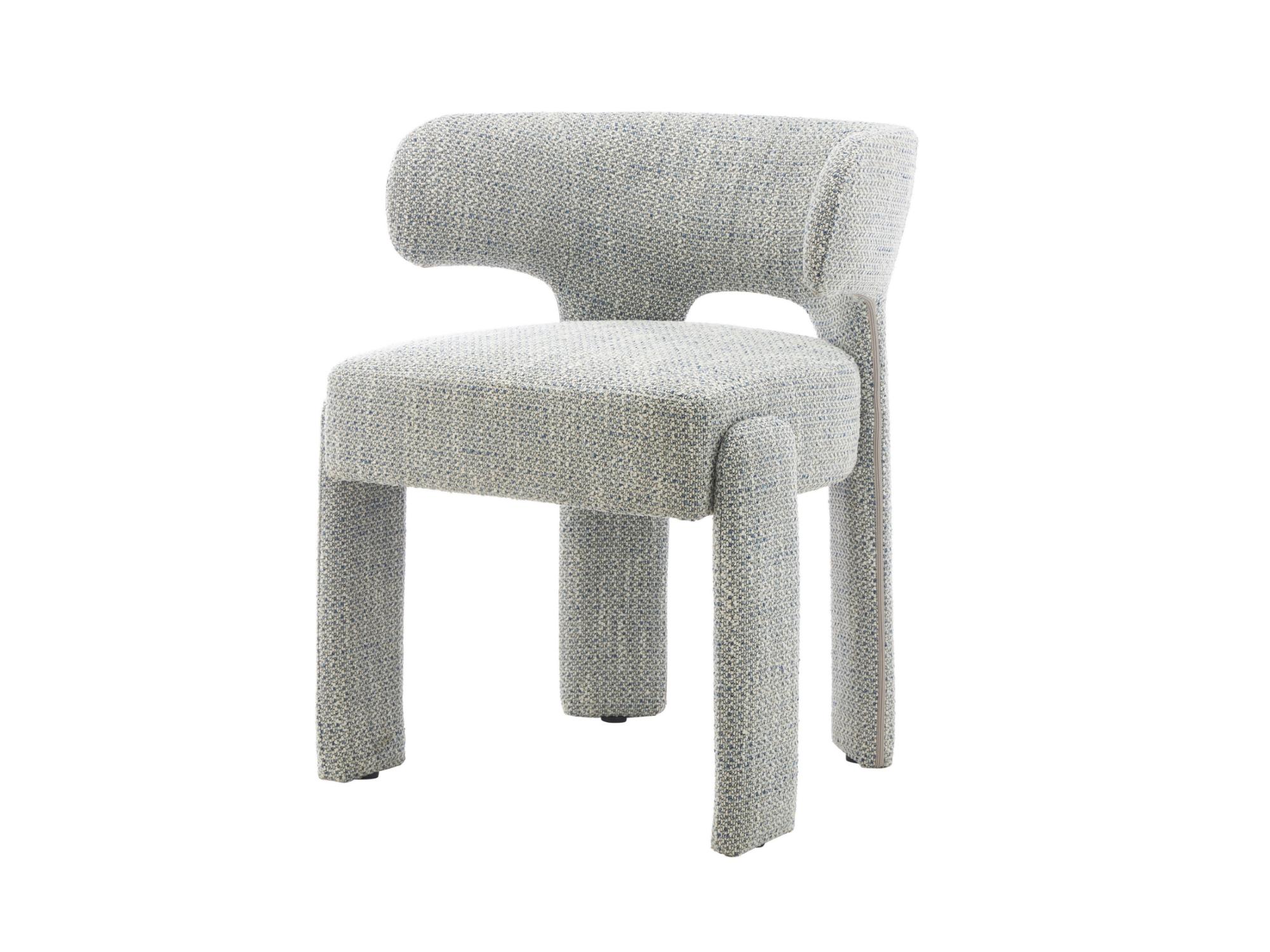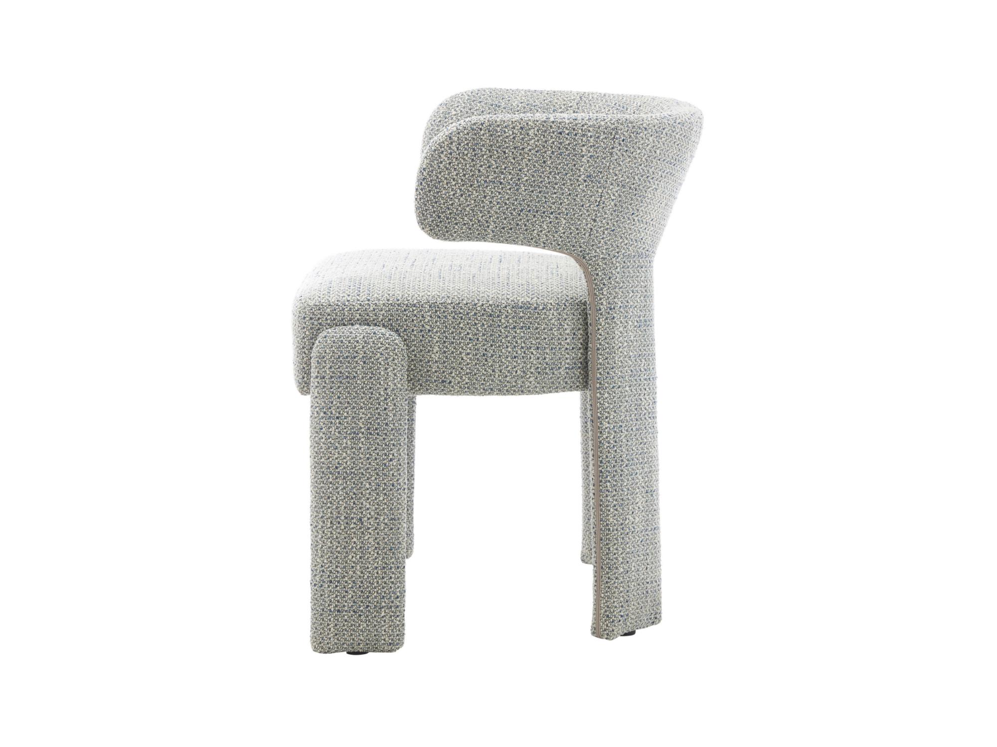 Designed for both comfort and presence, this fully upholstered dining chair brings a sense of quiet luxury to the dining space. Wrapped in a richly textured fabric, it offers a soft, tactile finish that enhances its refined silhouette.
