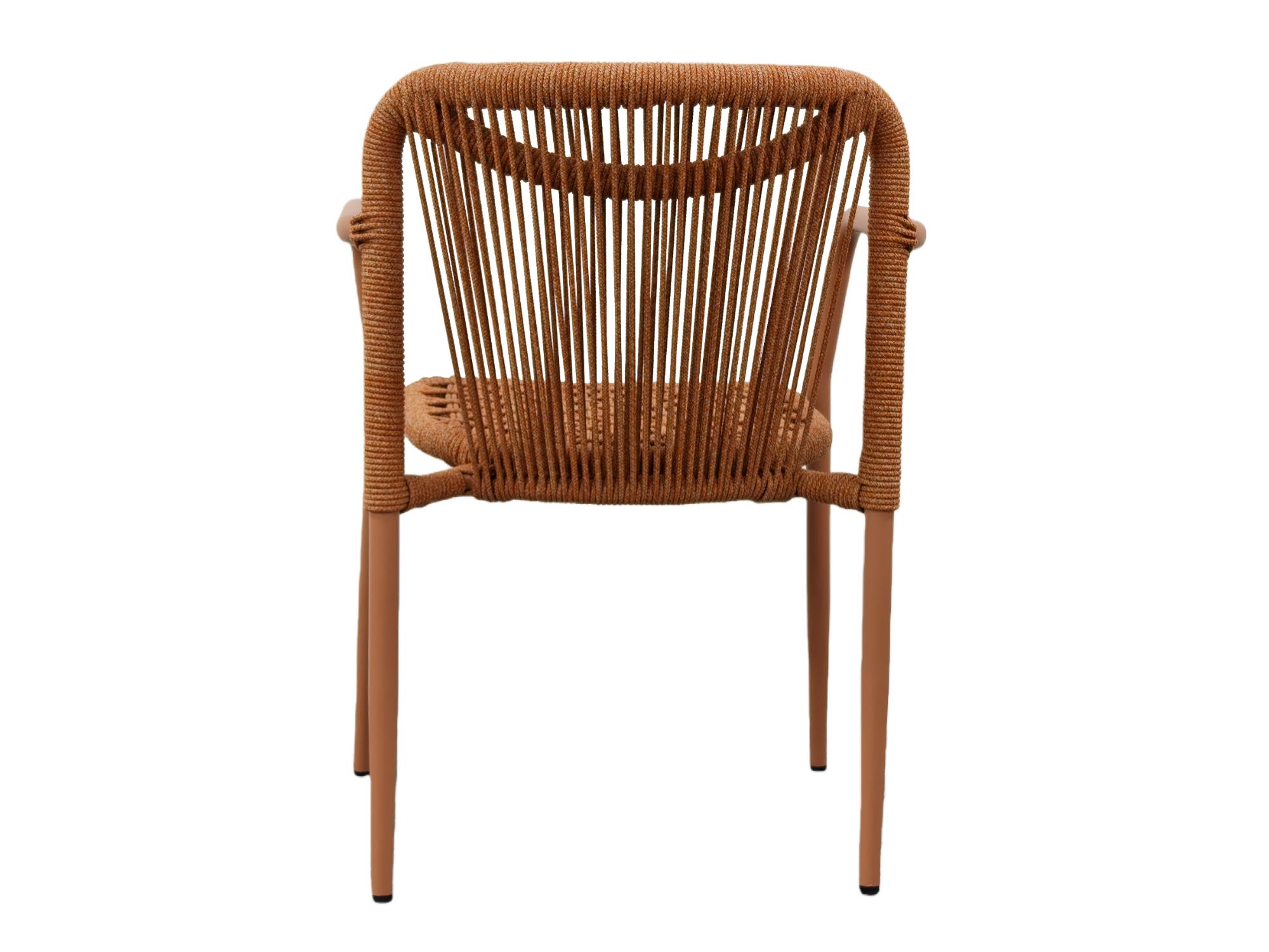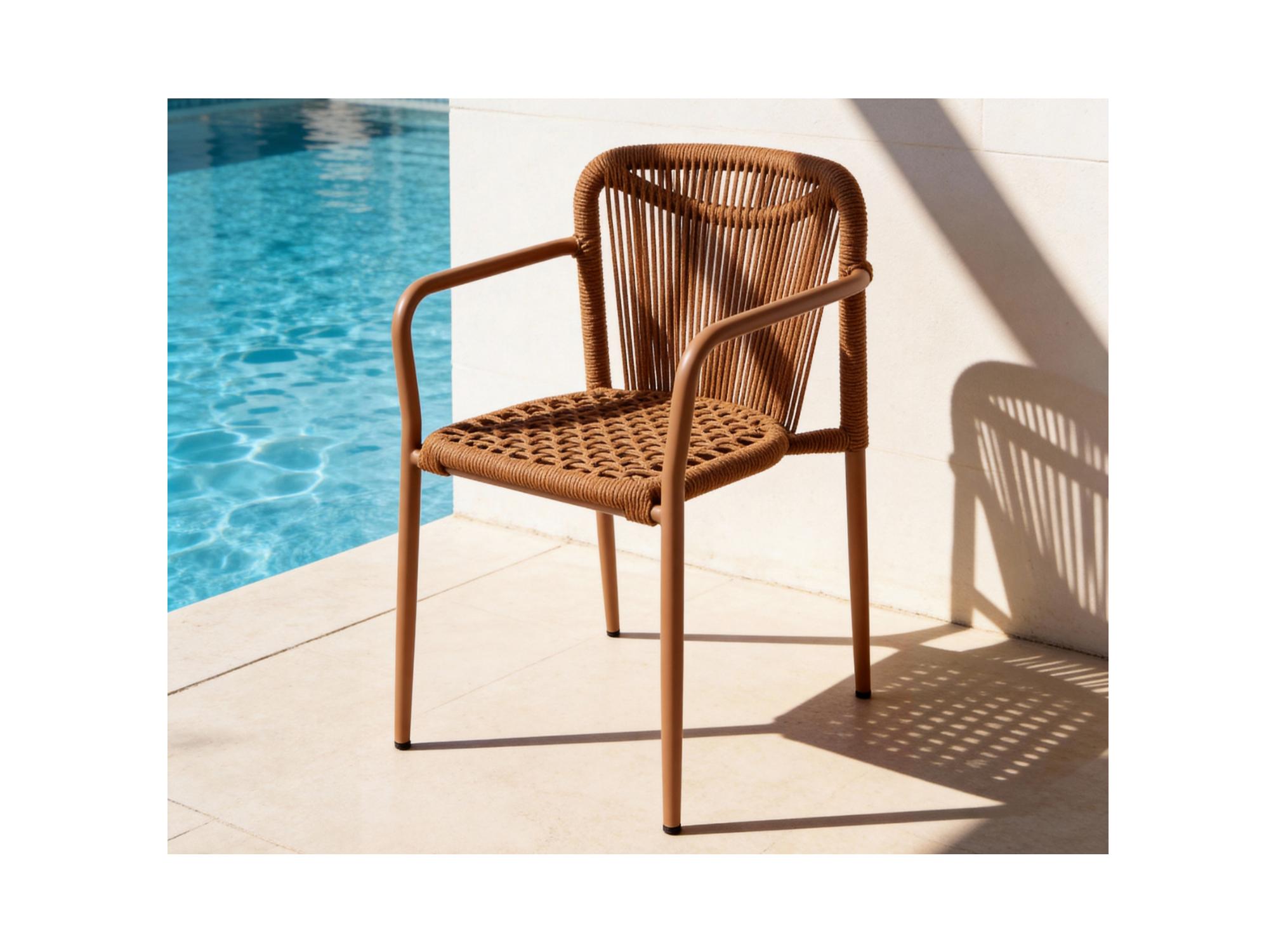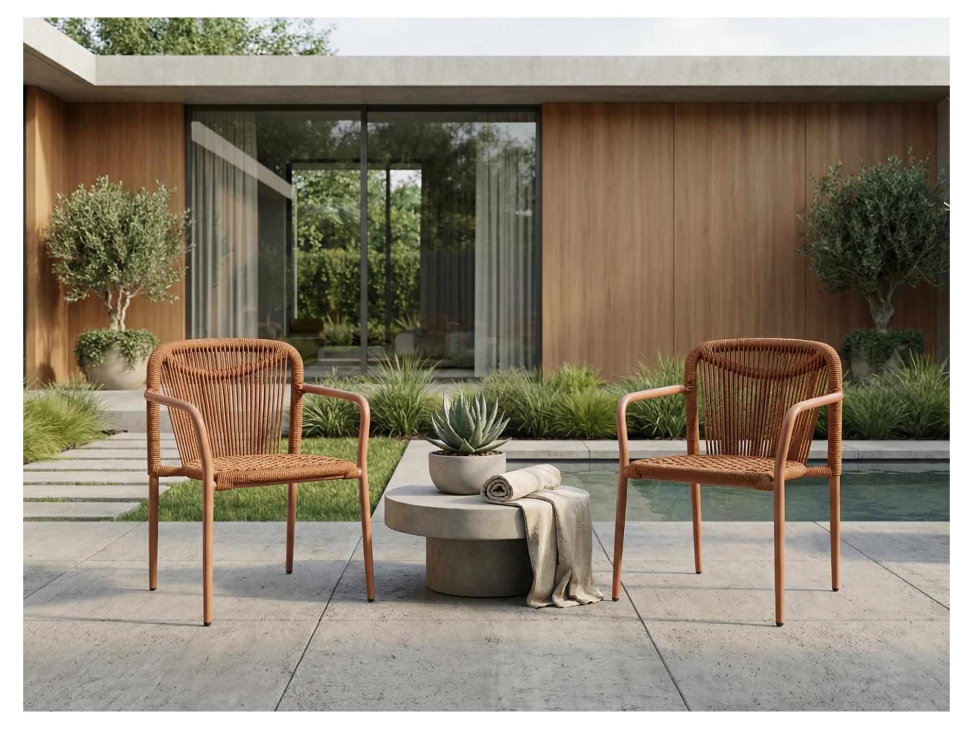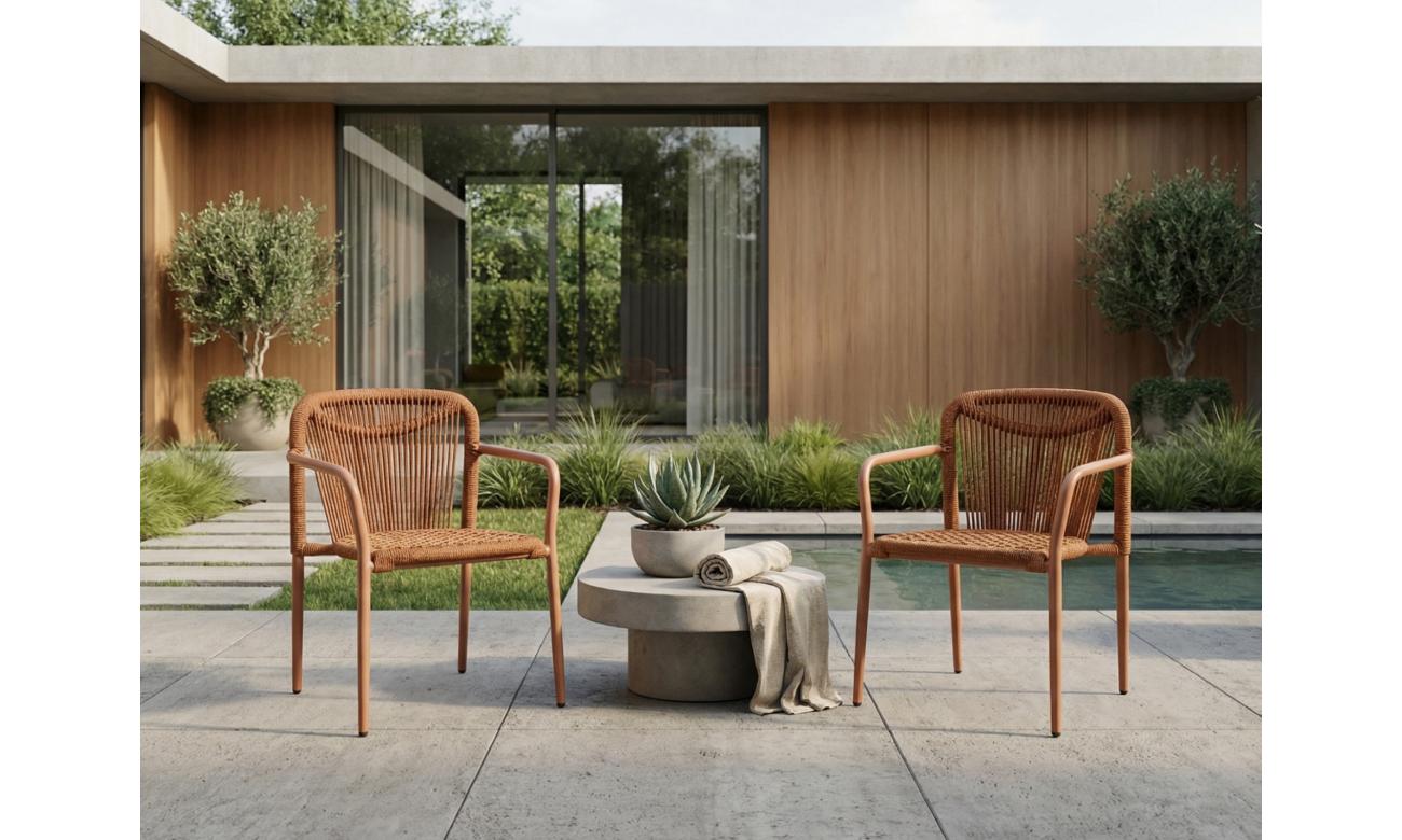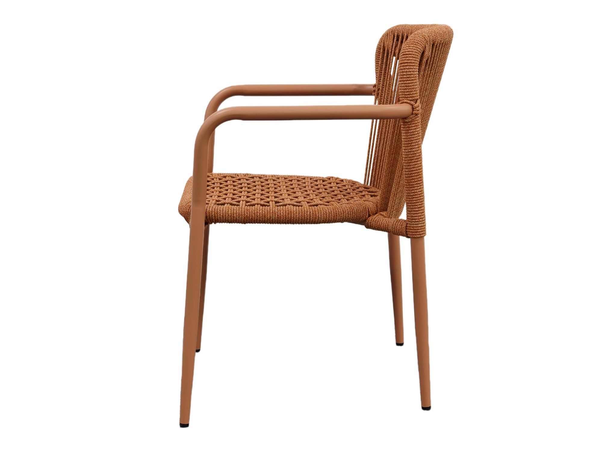 A classy outdoor chair designed for comfort and style, featuring a durable aluminium frame and a comfortable rope seat.