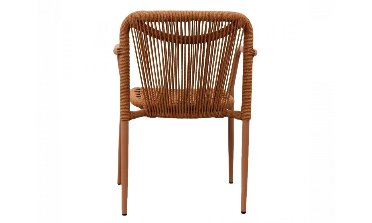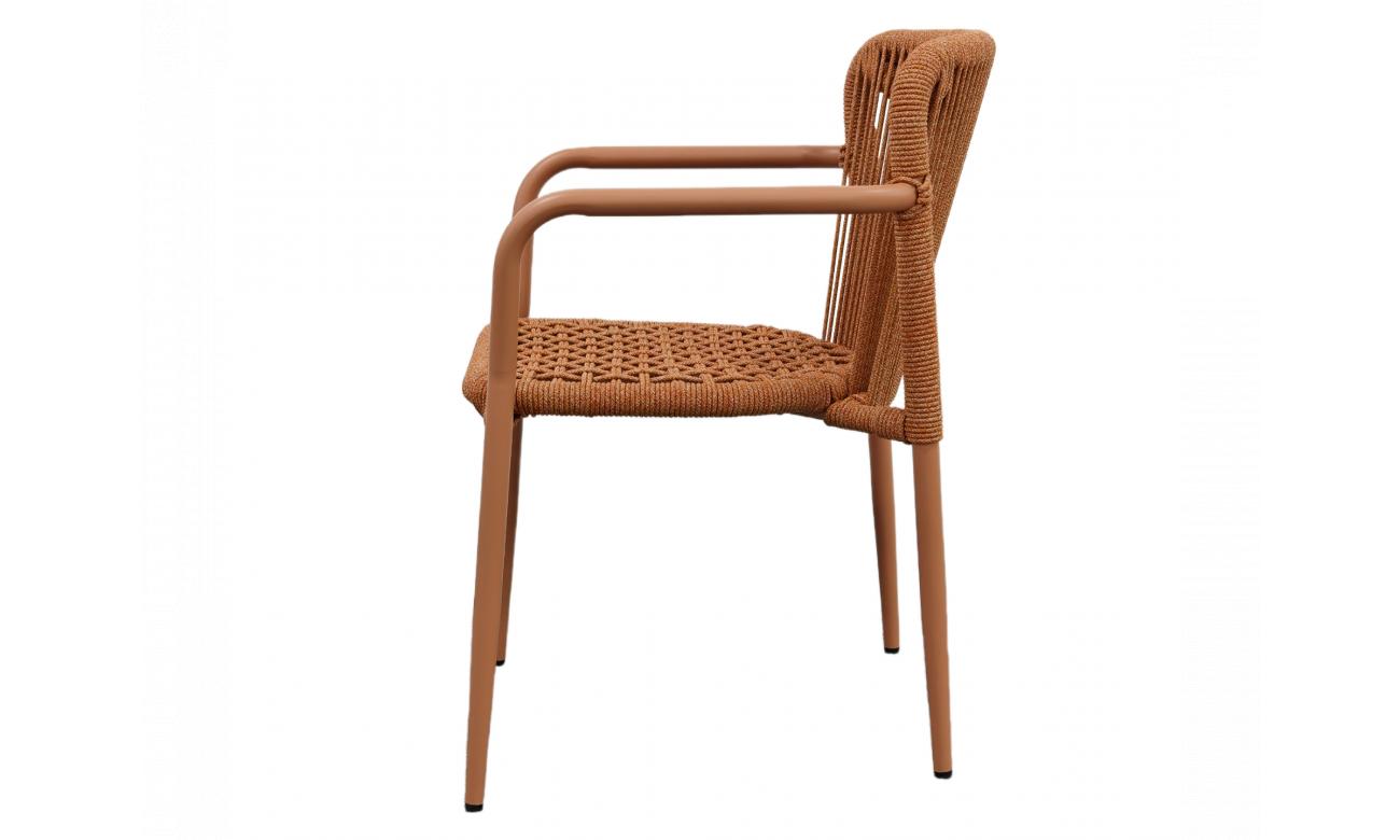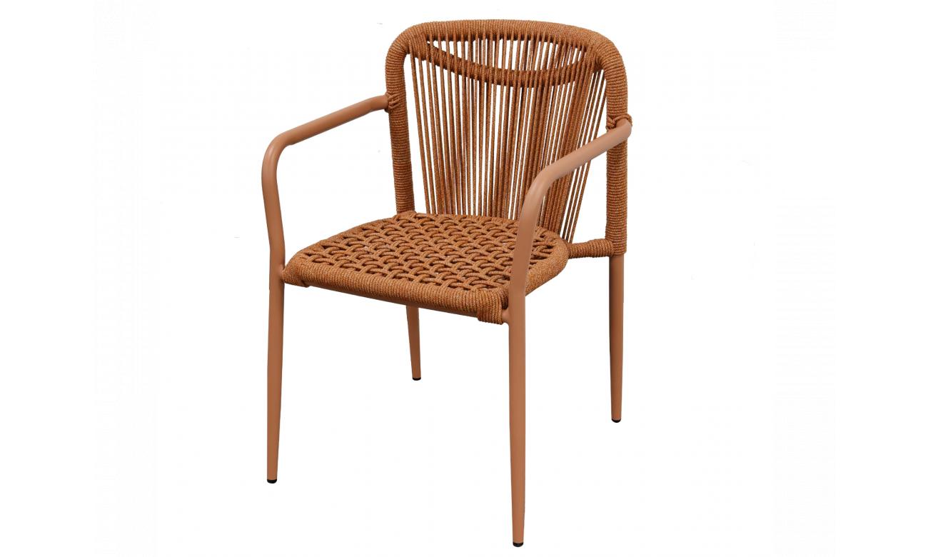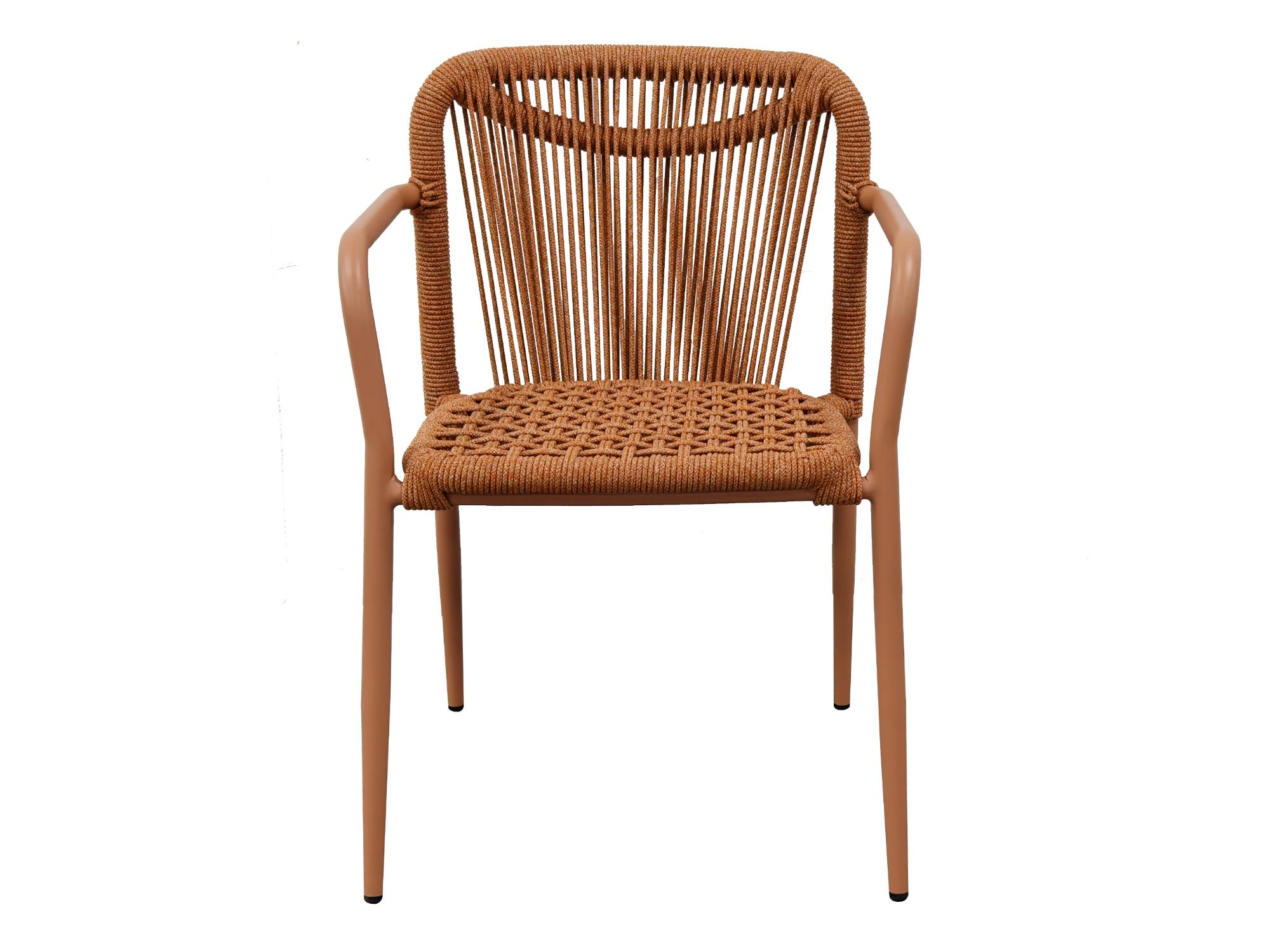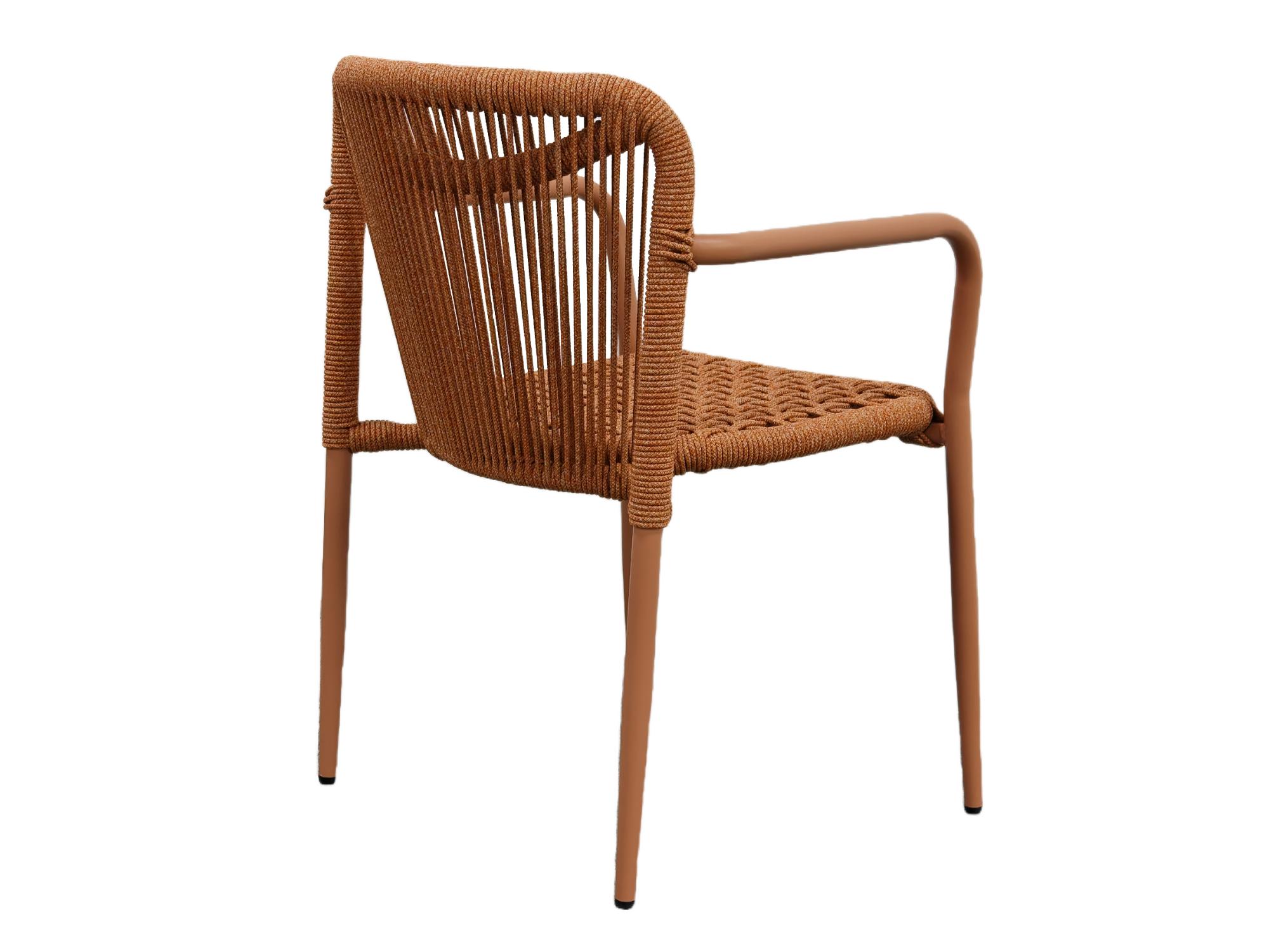 A classy outdoor chair designed for comfort and style, featuring a durable aluminium frame and a comfortable rope seat.