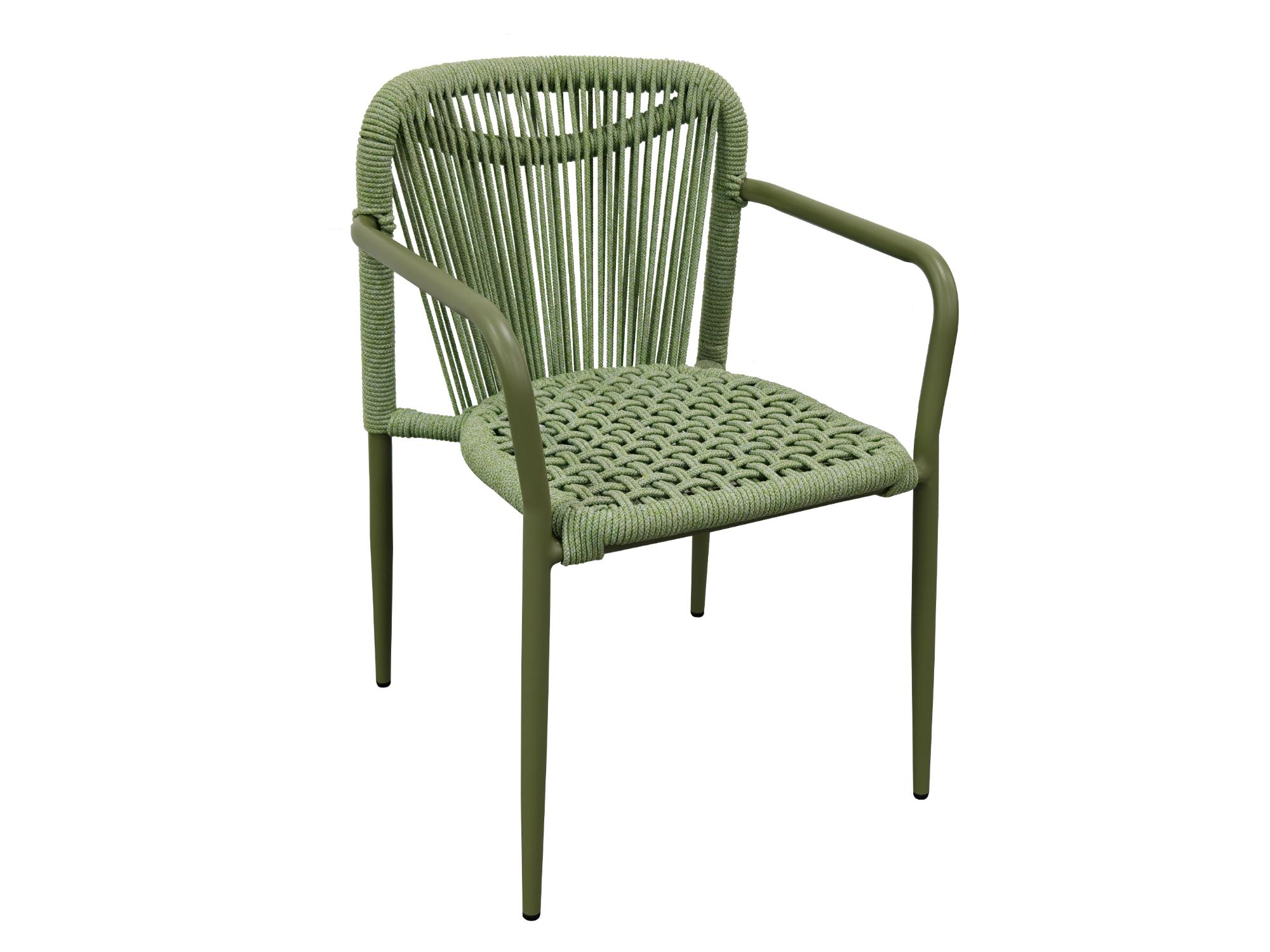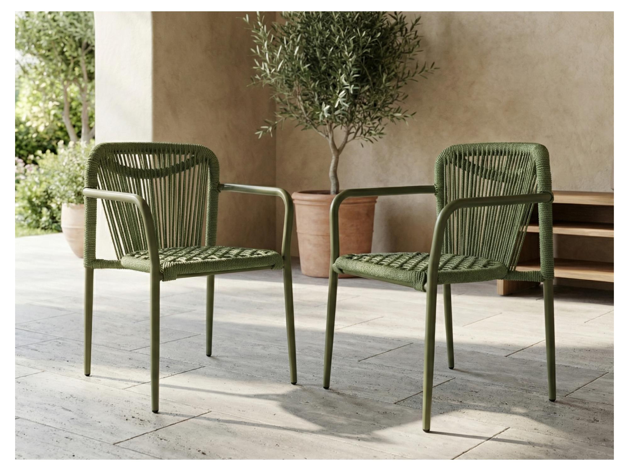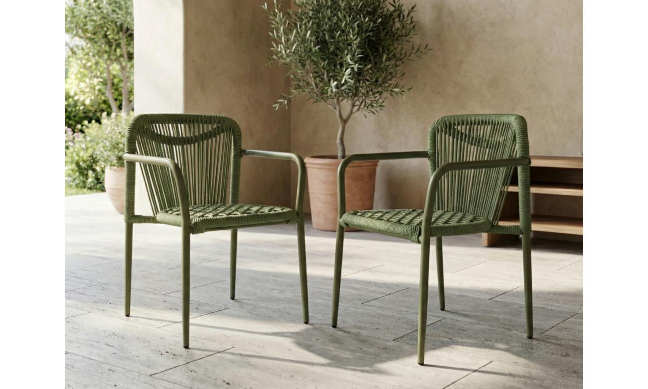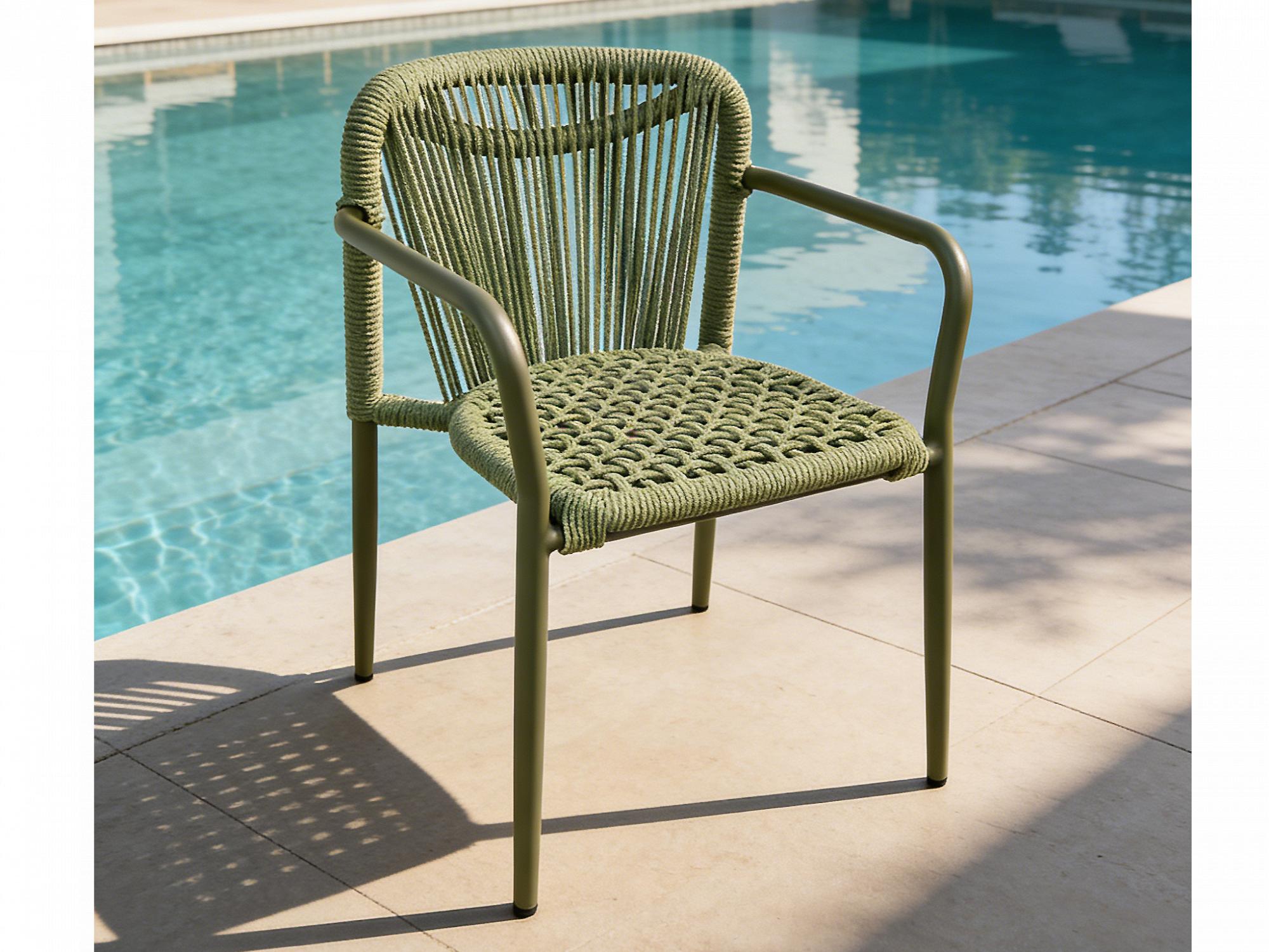 A classy outdoor chair designed for comfort and style, featuring a durable aluminium frame and a comfortable rope seat.