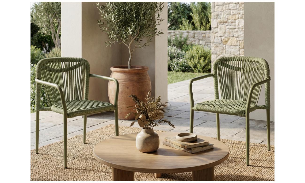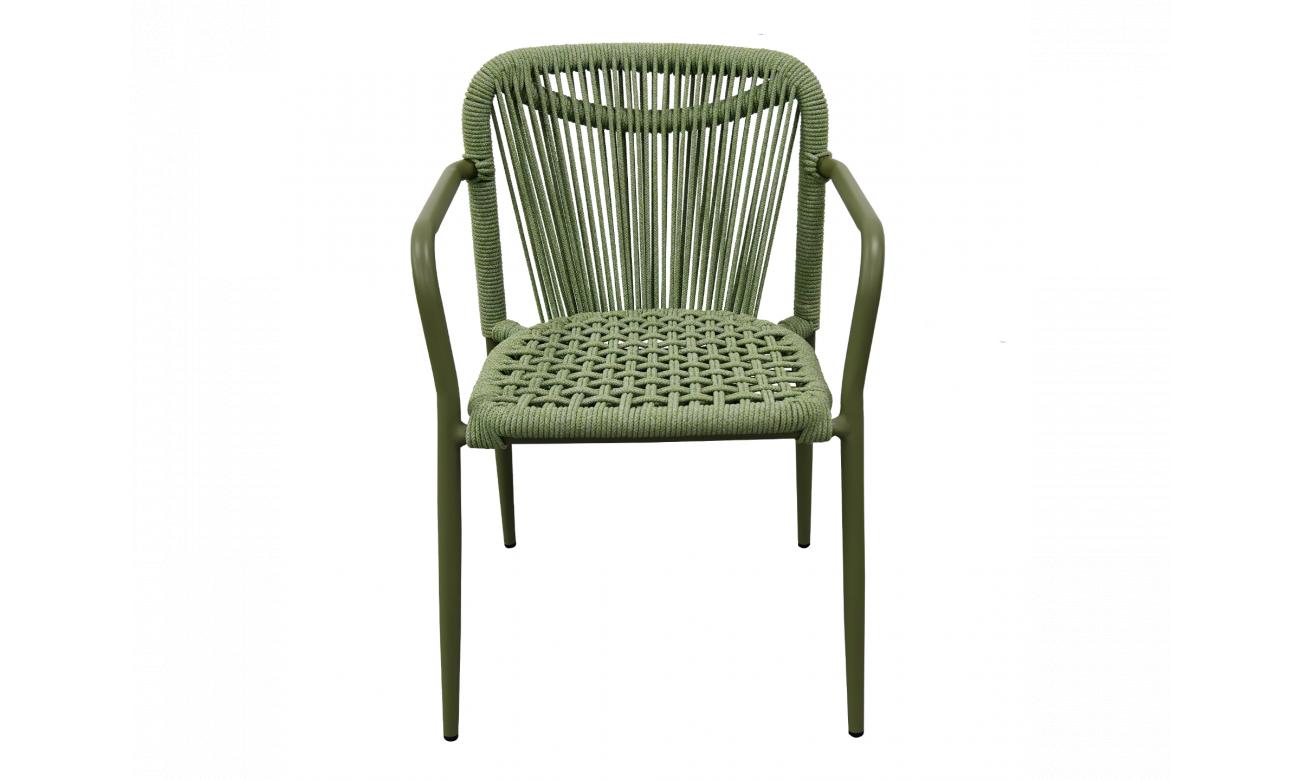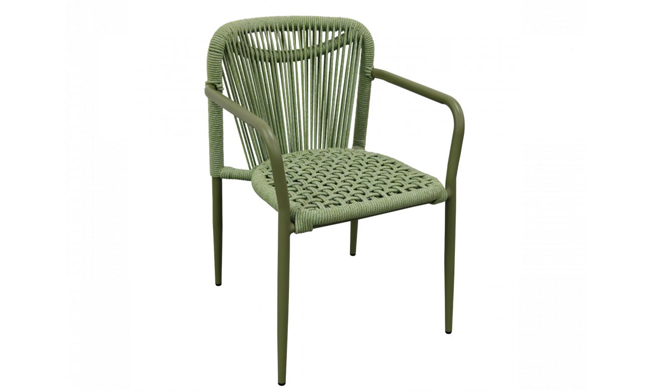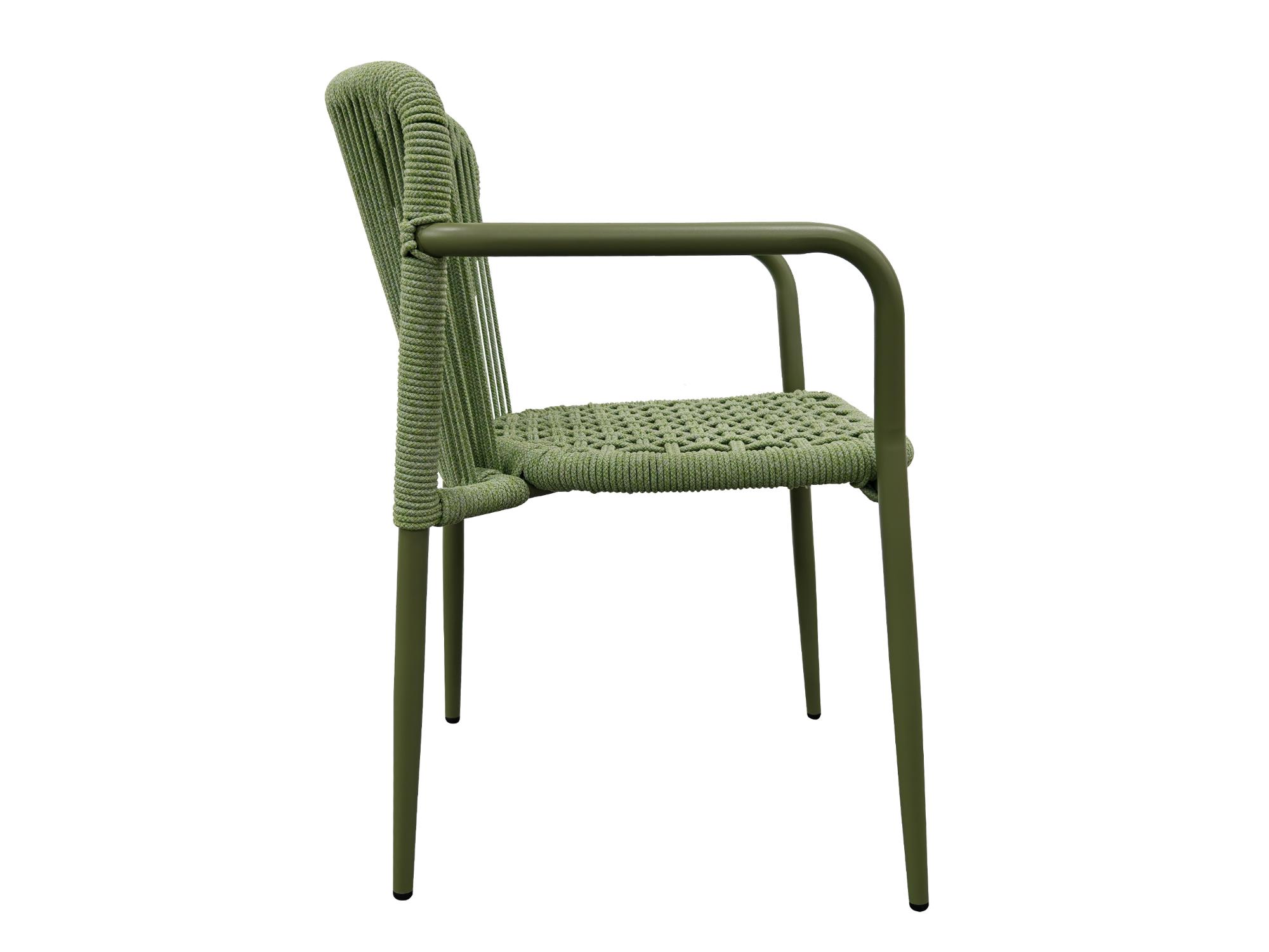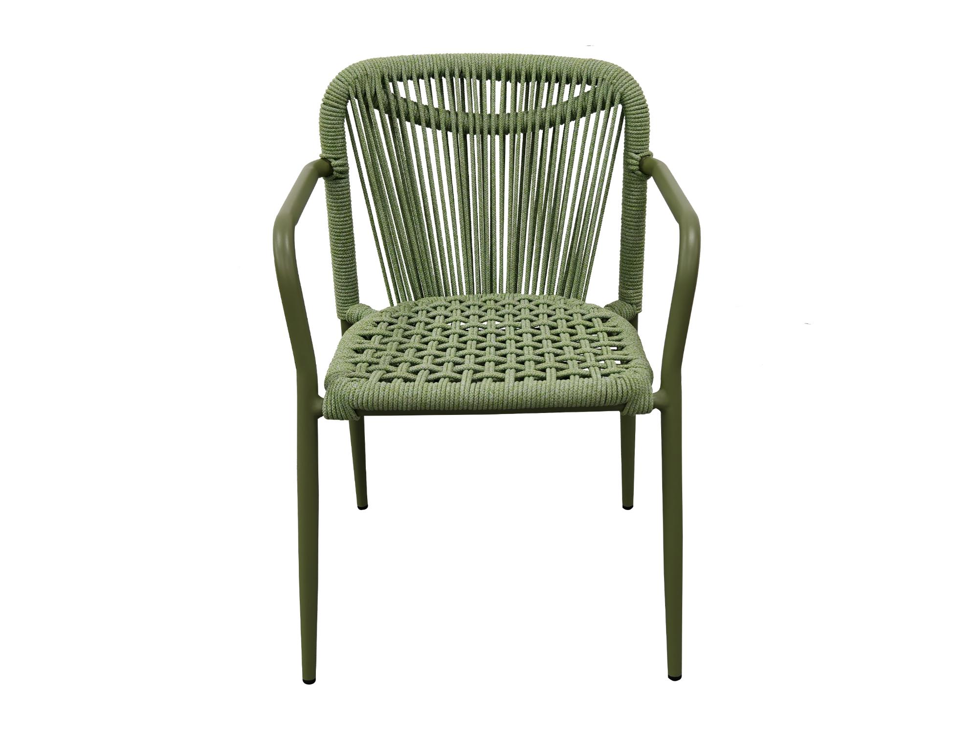 A classy outdoor chair designed for comfort and style, featuring a durable aluminium frame and a comfortable rope seat.