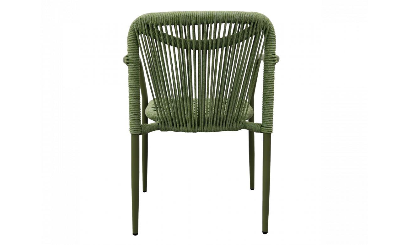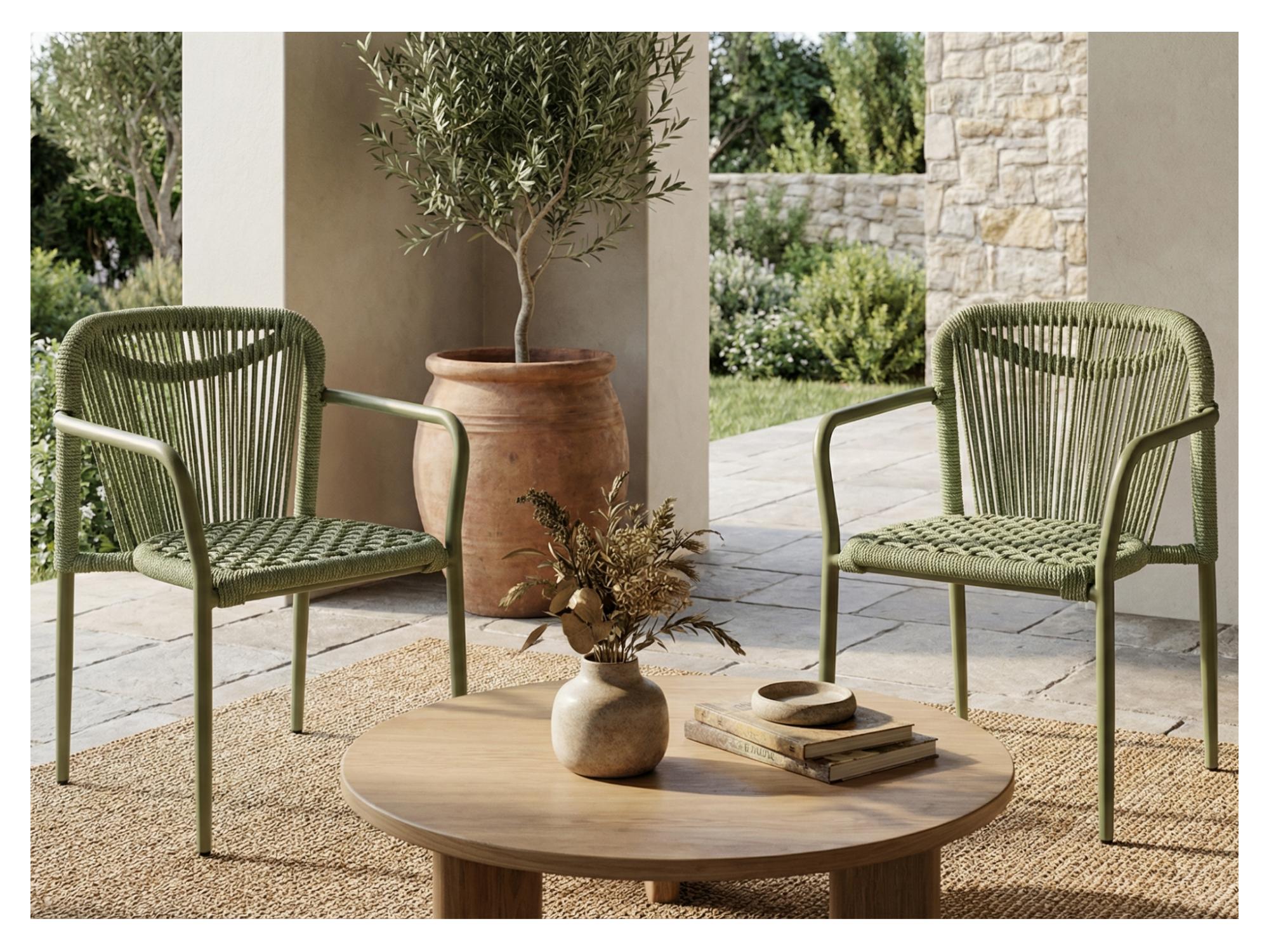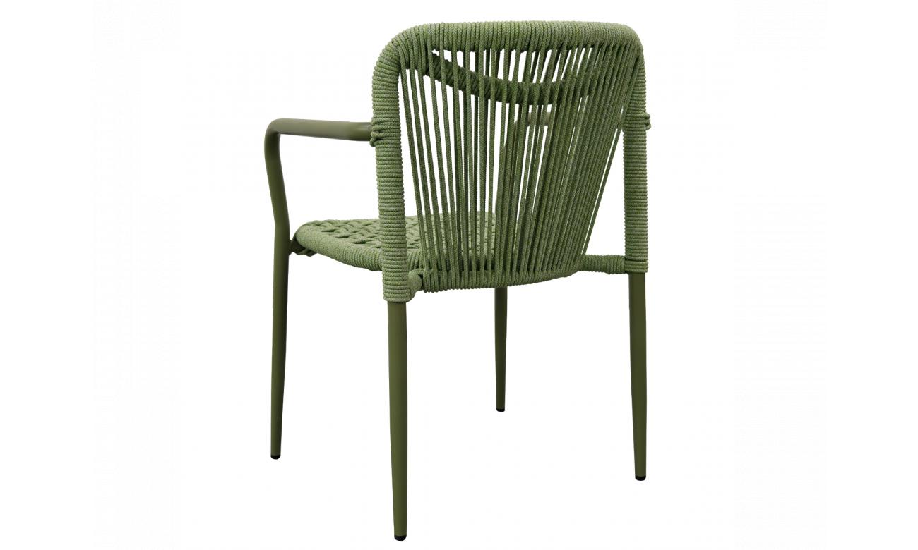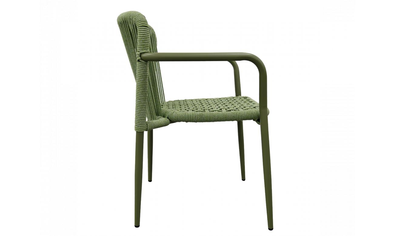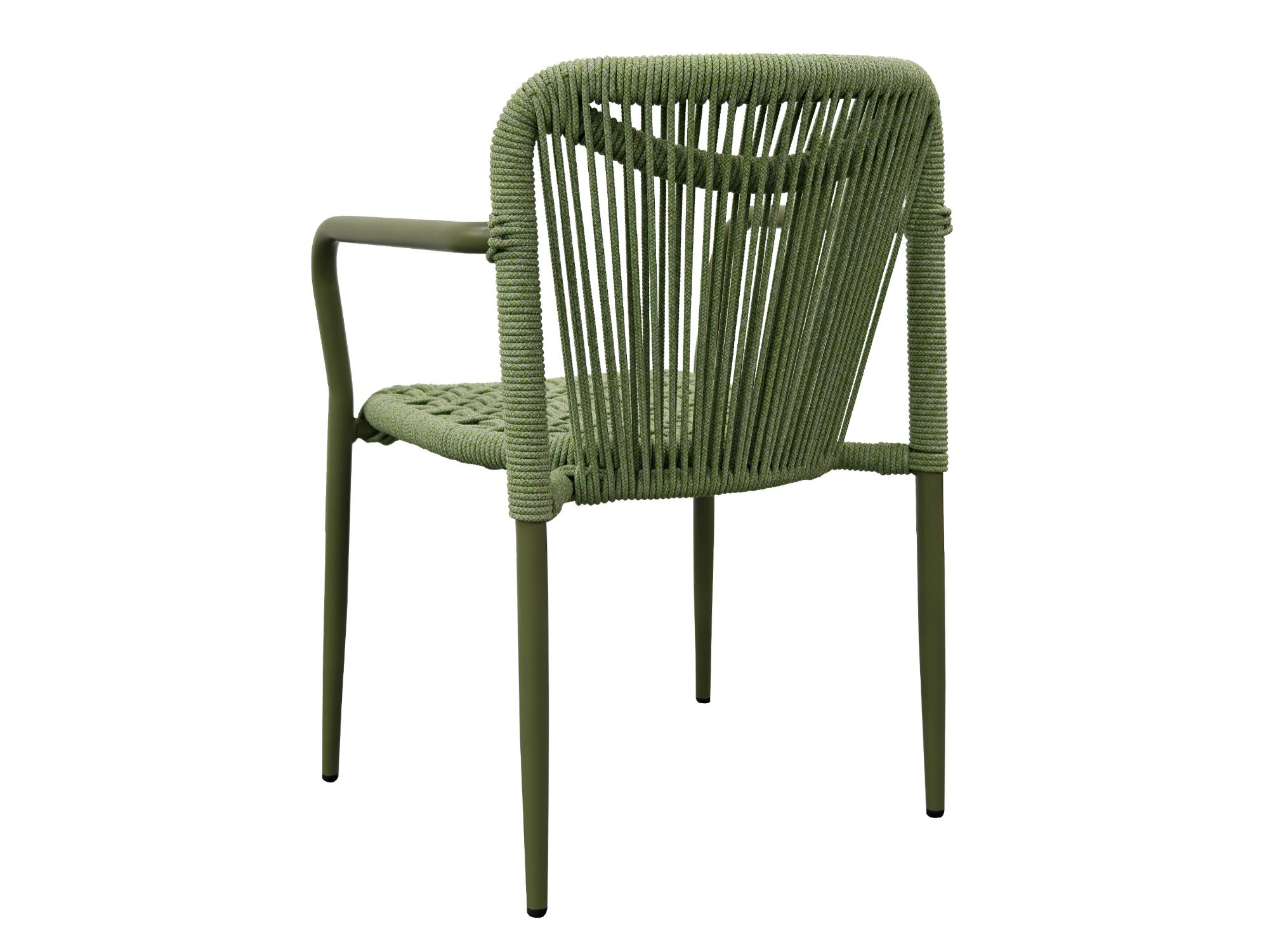 A classy outdoor chair designed for comfort and style, featuring a durable aluminium frame and a comfortable rope seat.