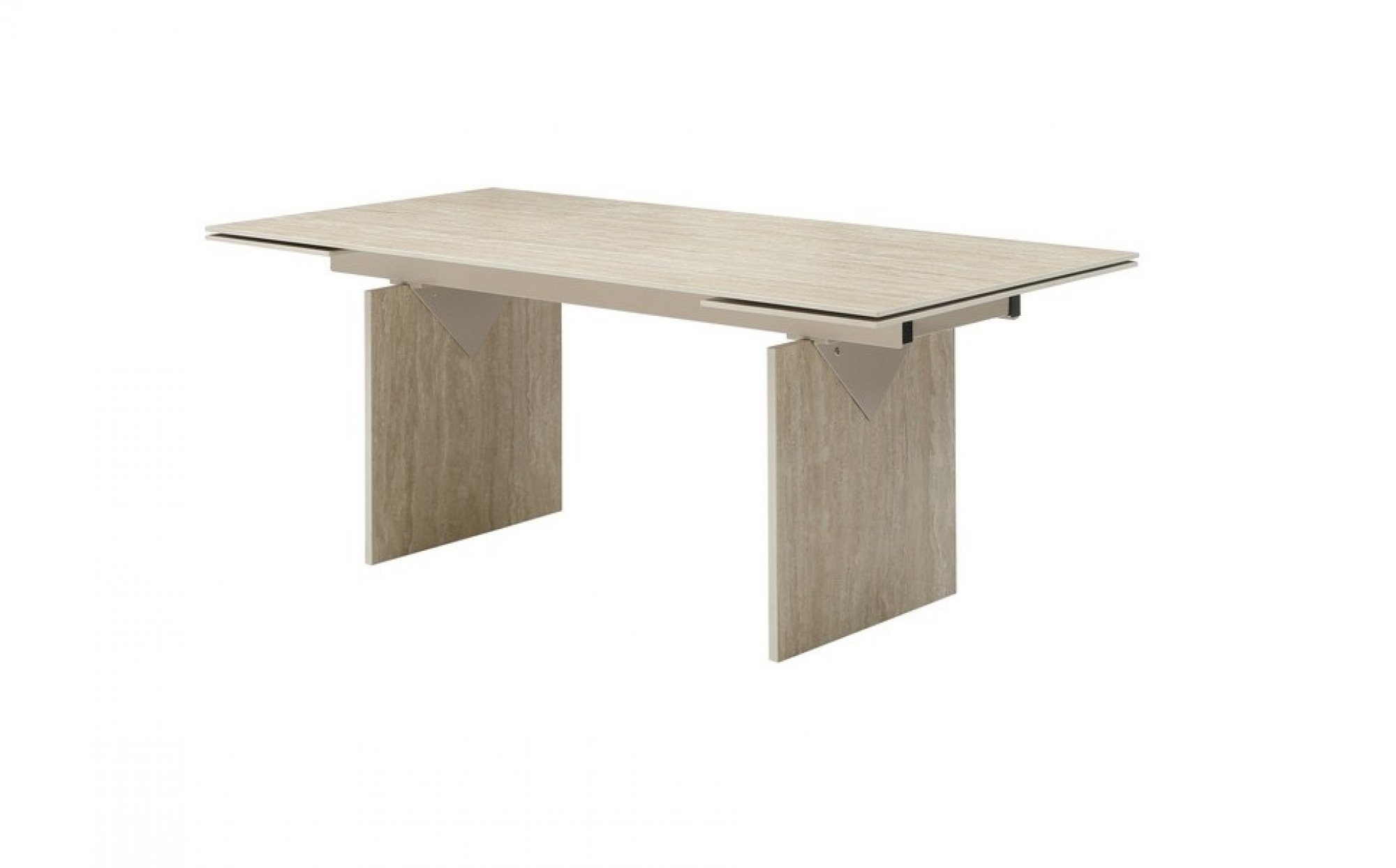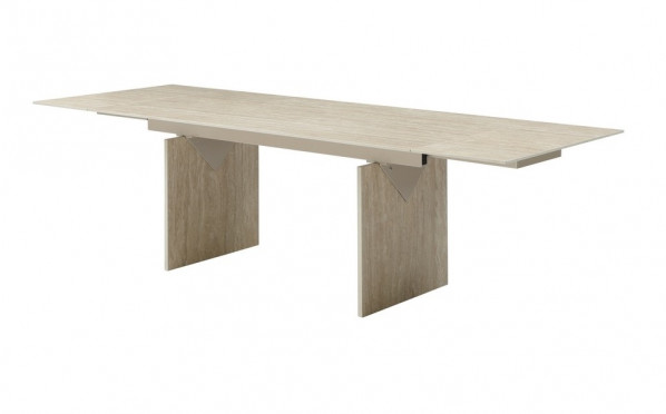 But it's not just about the size, the Nero Ceramic Extension Dining Table also boasts a luxurious travertine look ceramic surface. This sleek and sophisticated material adds a touch of elegance to any room, while also being scratch and heat resistant. Say goodbye to worries about spills or scratches, as this table is built to withstand the wear and tear of everyday use. It's the perfect combination of practicality and style.