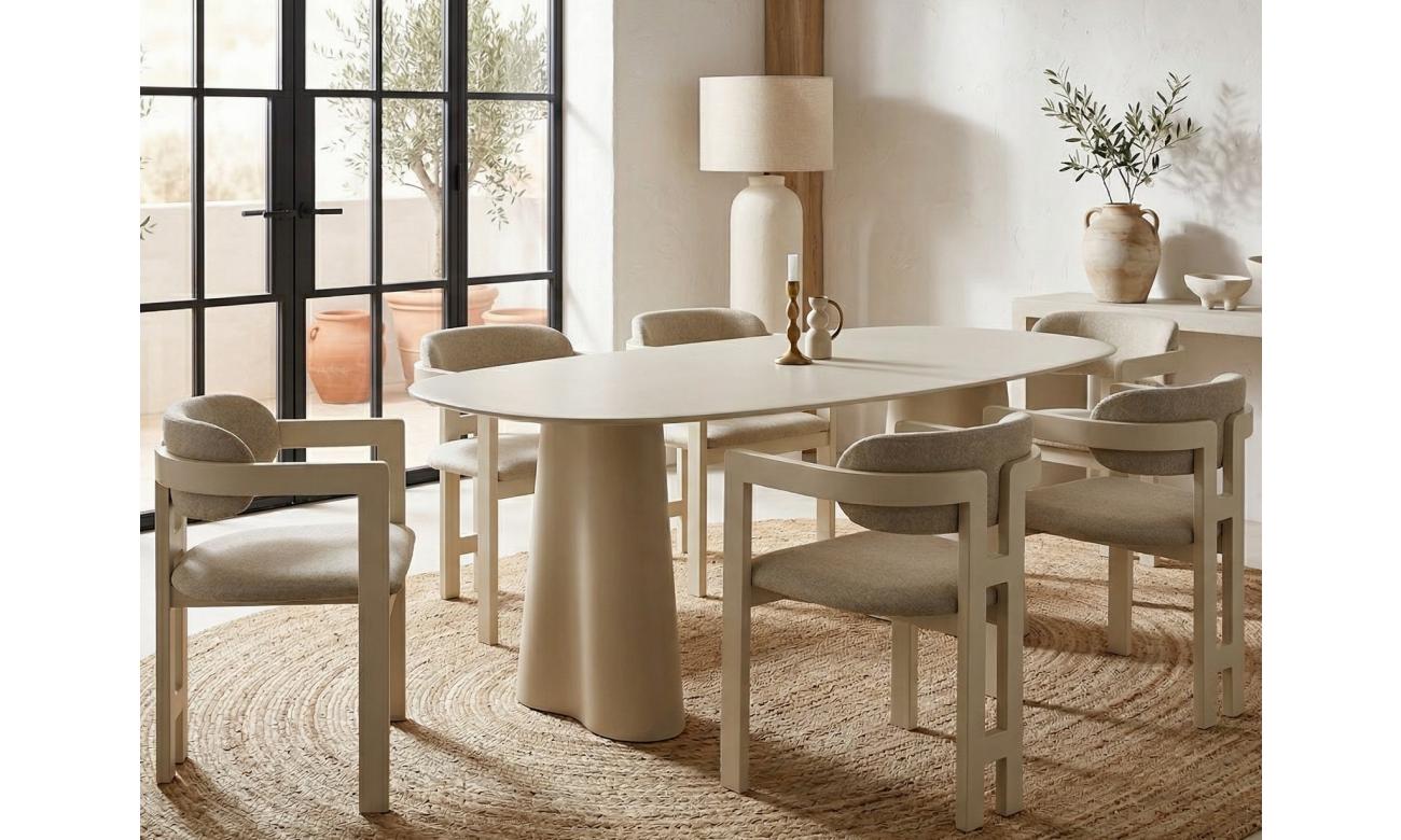 Portofino is designed to anchor the dining space with confident architectural presence. Its elongated proportions create a refined statement, ideal for larger dining areas and open-plan living.