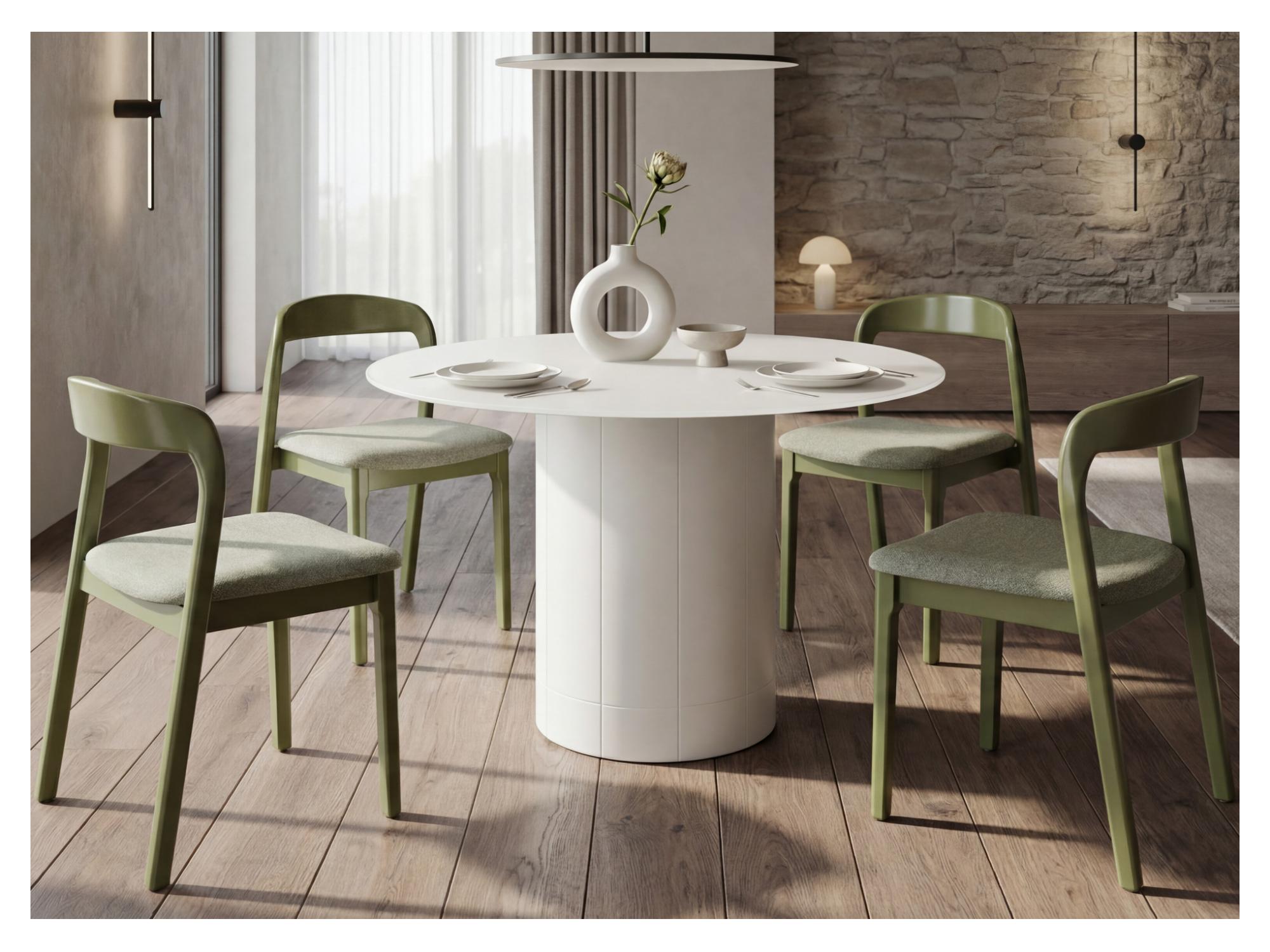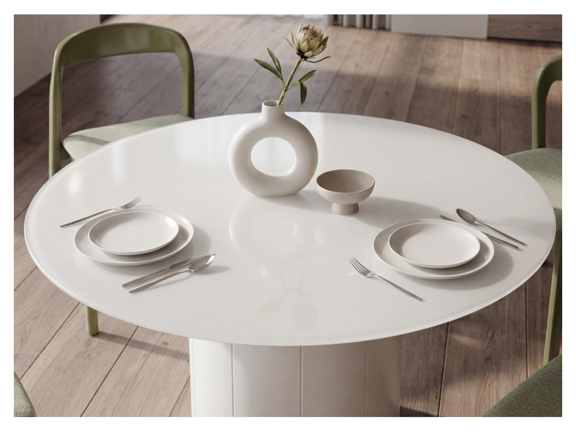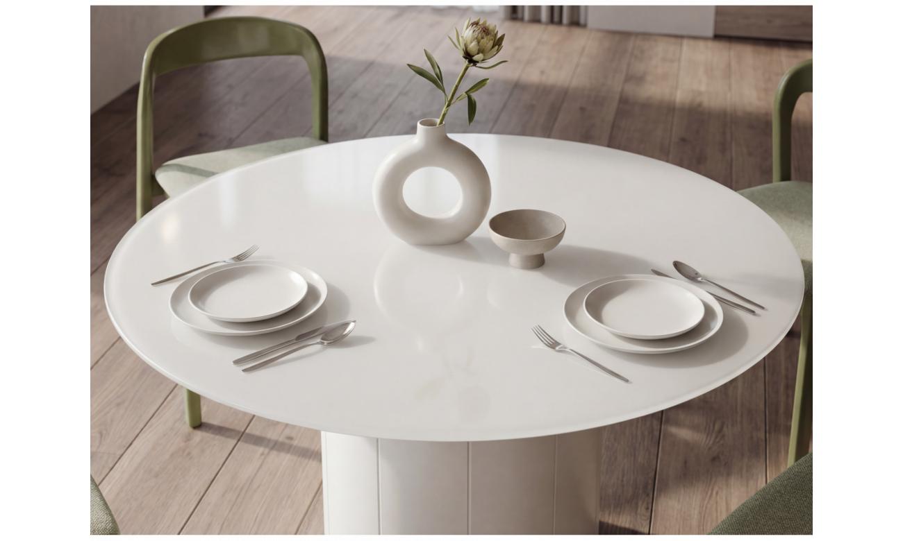 Rimini celebrates connection through its round silhouette. The pedestal base allows flexible seating while maintaining a clean, uninterrupted form.