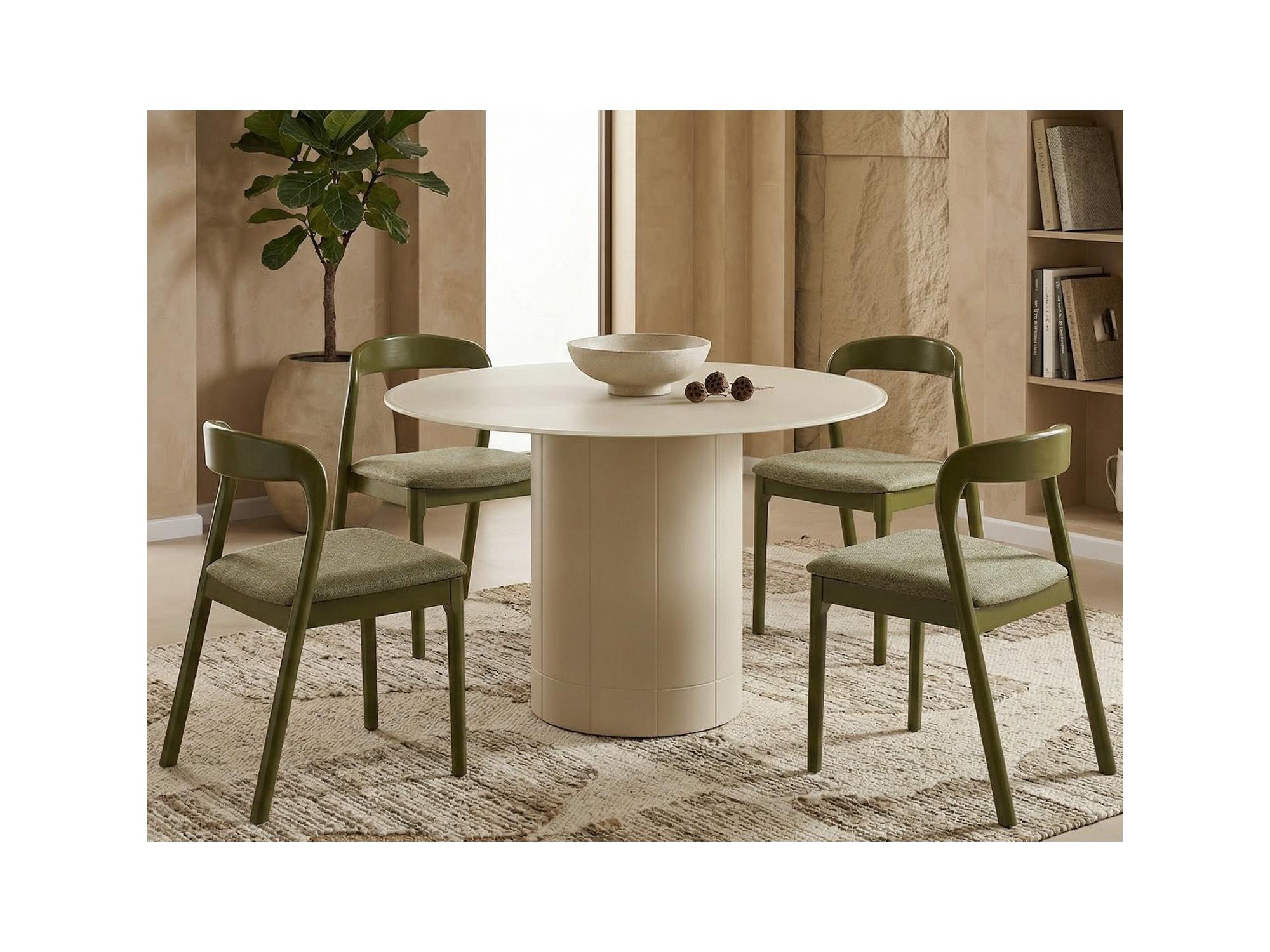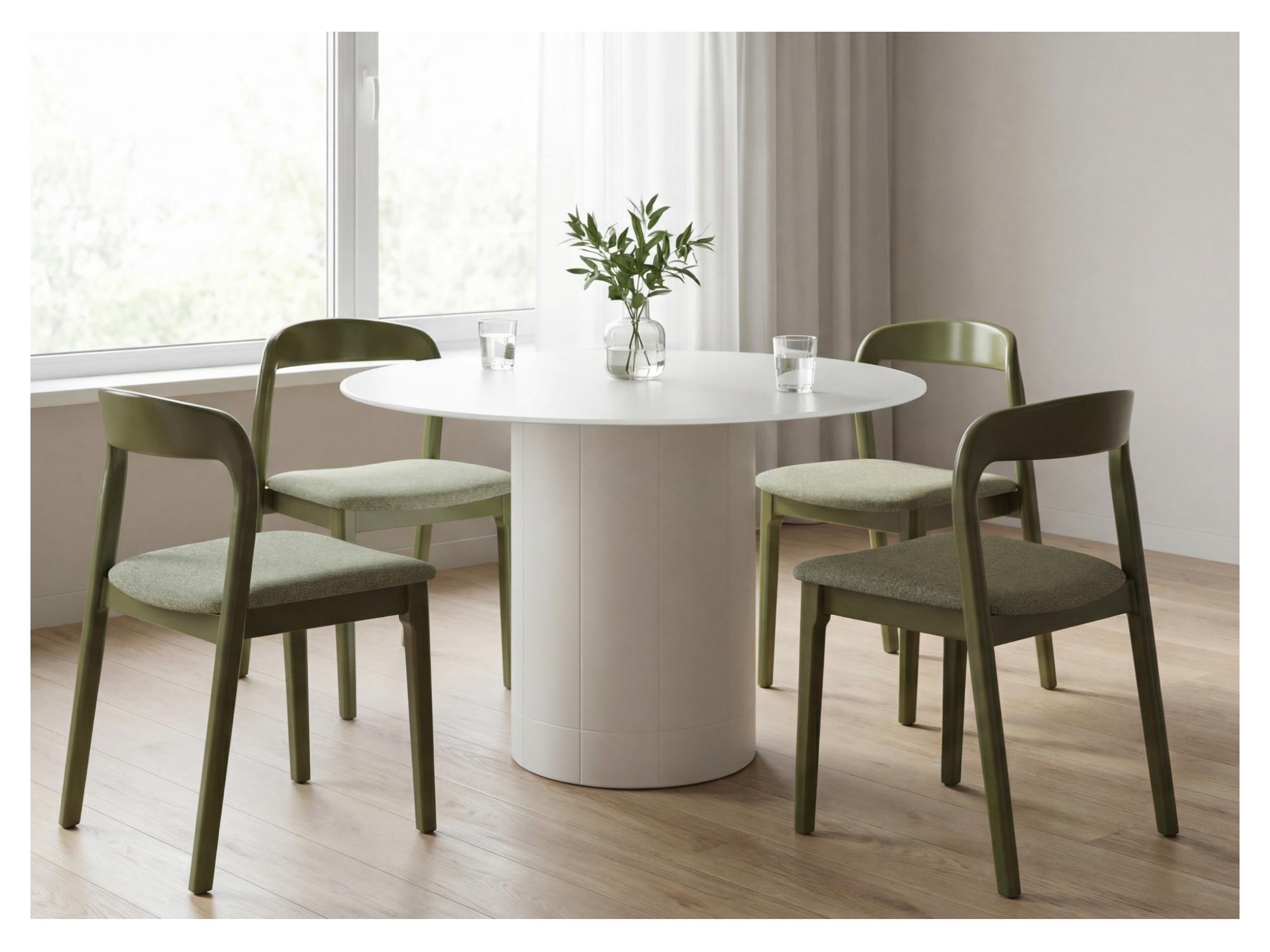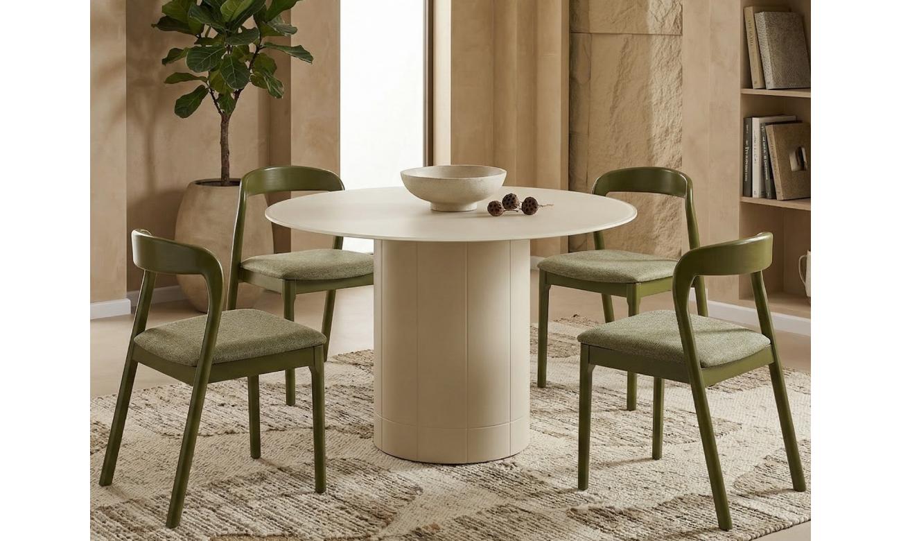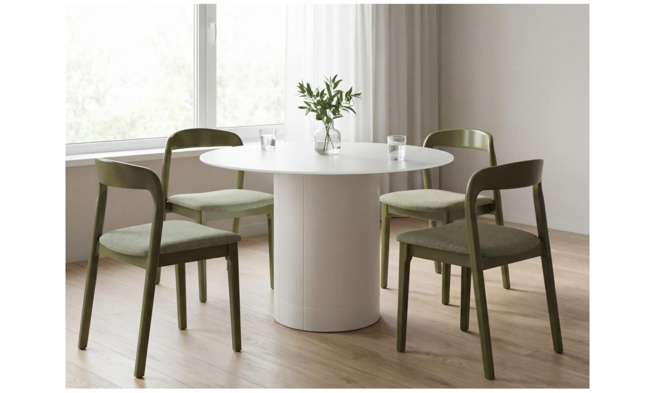 Rimini celebrates connection through its round silhouette. The pedestal base allows flexible seating while maintaining a clean, uninterrupted form.
