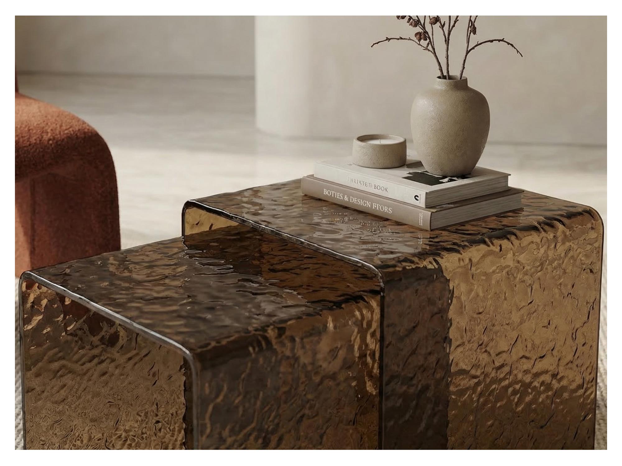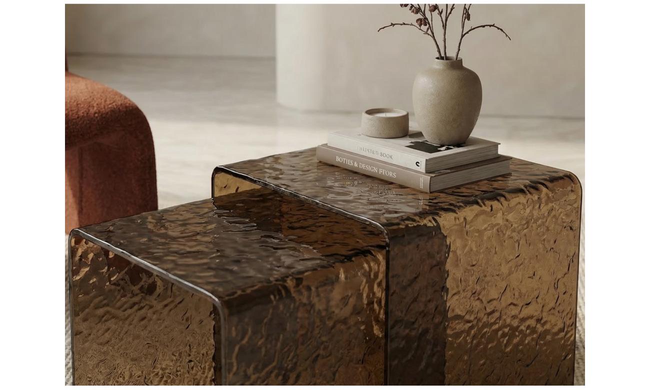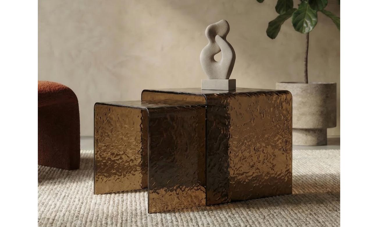 Sedona Coffee Table Set is a stylish set of two coffee tables designed to elevate modern interiors. Featuring warm amber hot-melt glass, it adds depth and a refined aesthetic to any living space. The versatile design allows the tables to be used together or separately for flexible styling. Perfect for contemporary homes, showrooms, or interior design projects.