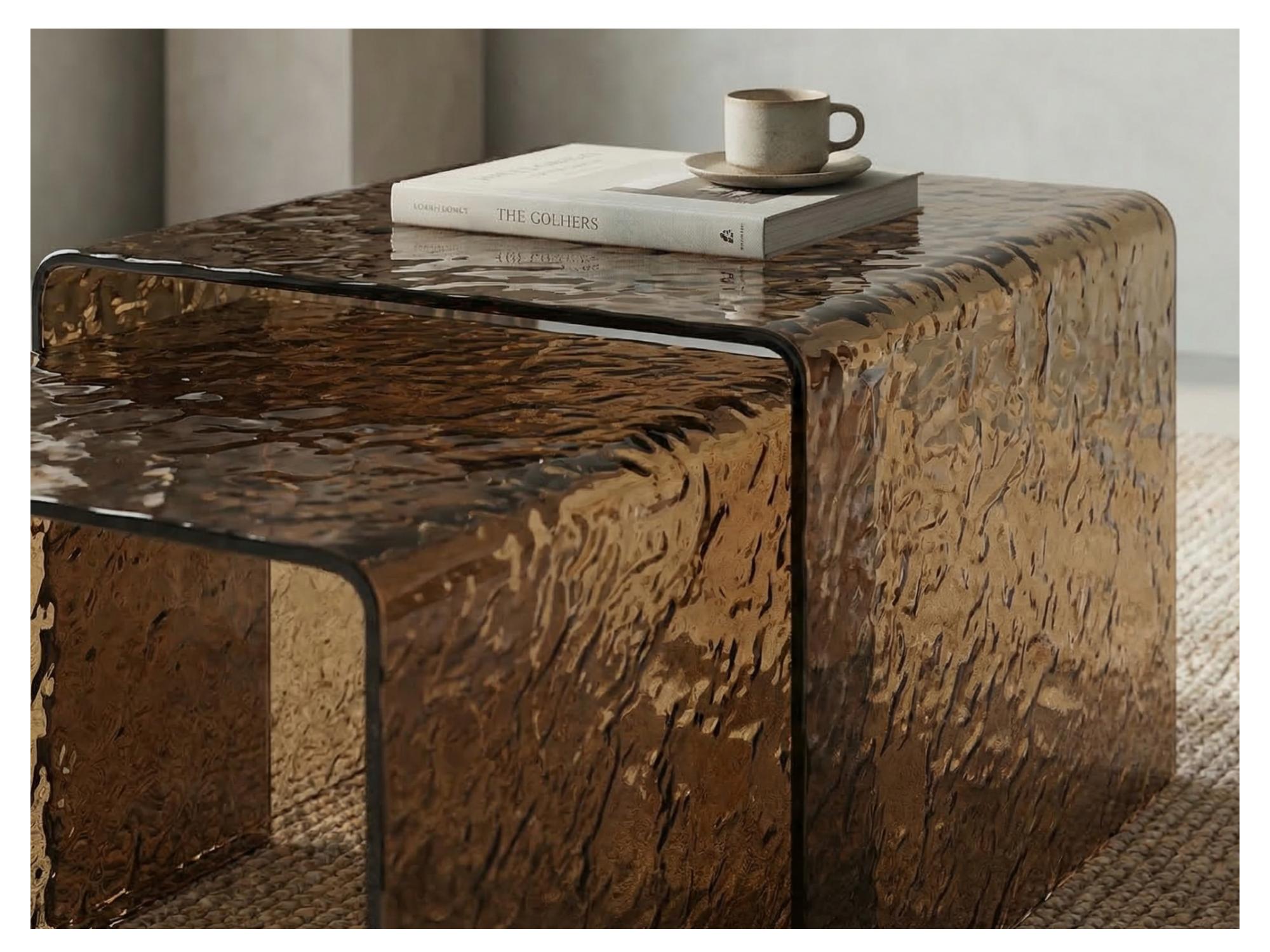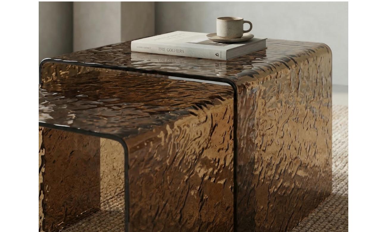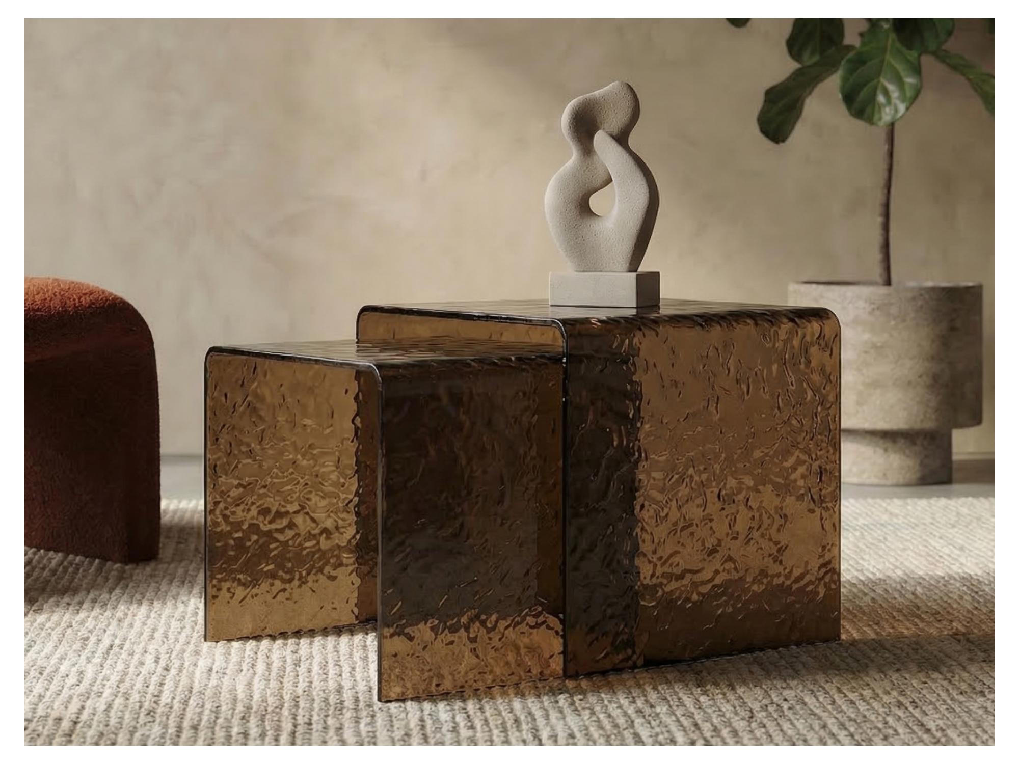 Sedona Coffee Table Set is a stylish set of two coffee tables designed to elevate modern interiors. Featuring warm amber hot-melt glass, it adds depth and a refined aesthetic to any living space. The versatile design allows the tables to be used together or separately for flexible styling. Perfect for contemporary homes, showrooms, or interior design projects.