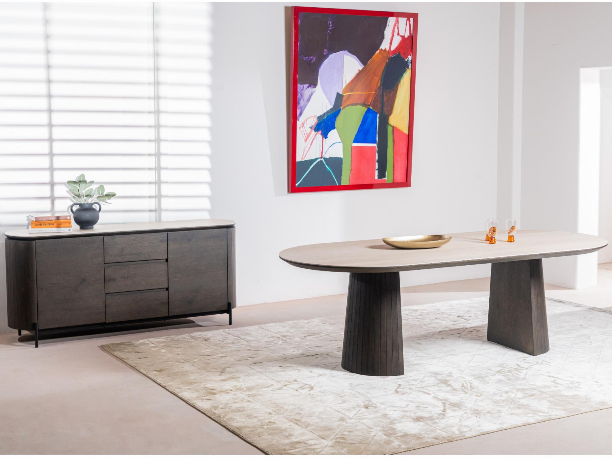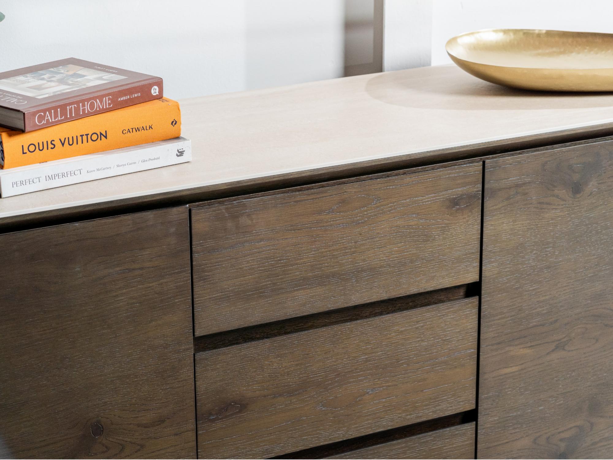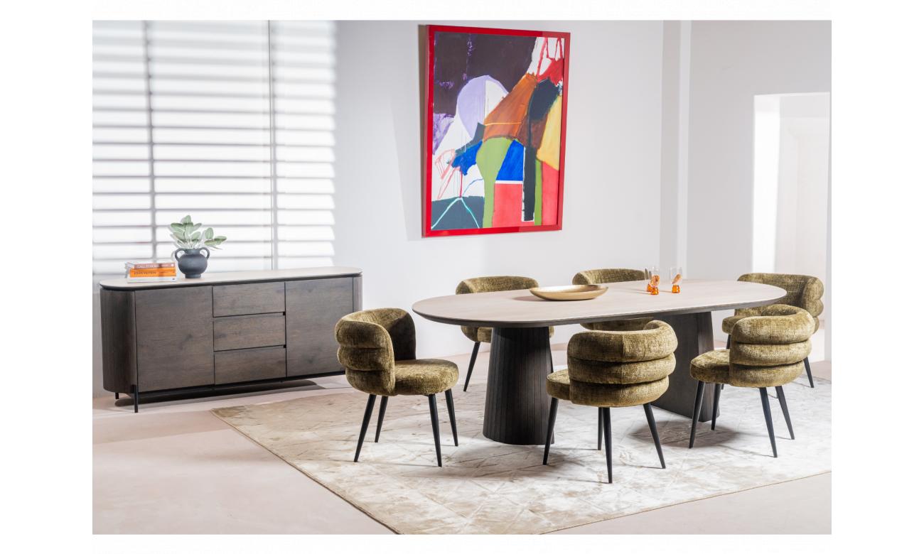 Enhance your home furniture experience with our stunning Ceramic and Wild Oak Veneer Dining Range. The perfect fusion of modern design and classic elegance, this side board with all the matching pieces is sure to be a showstopper in any living space.