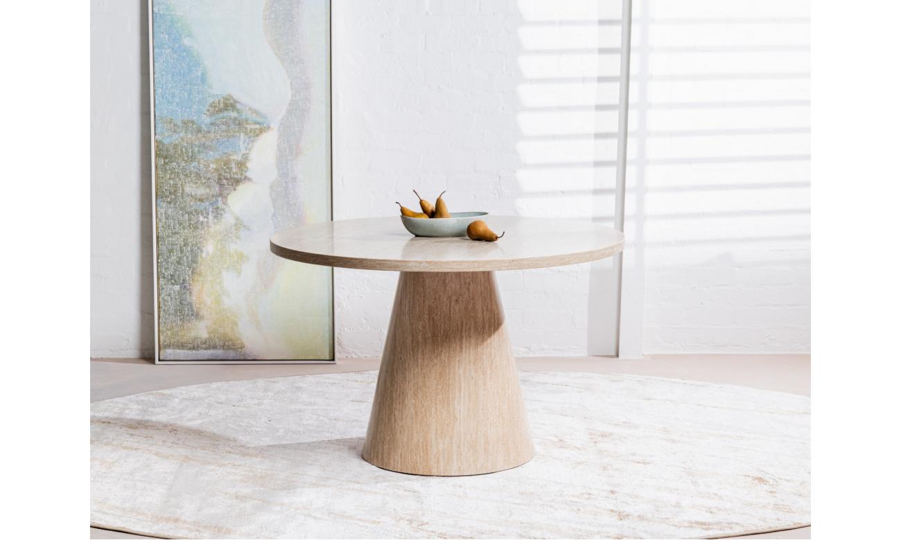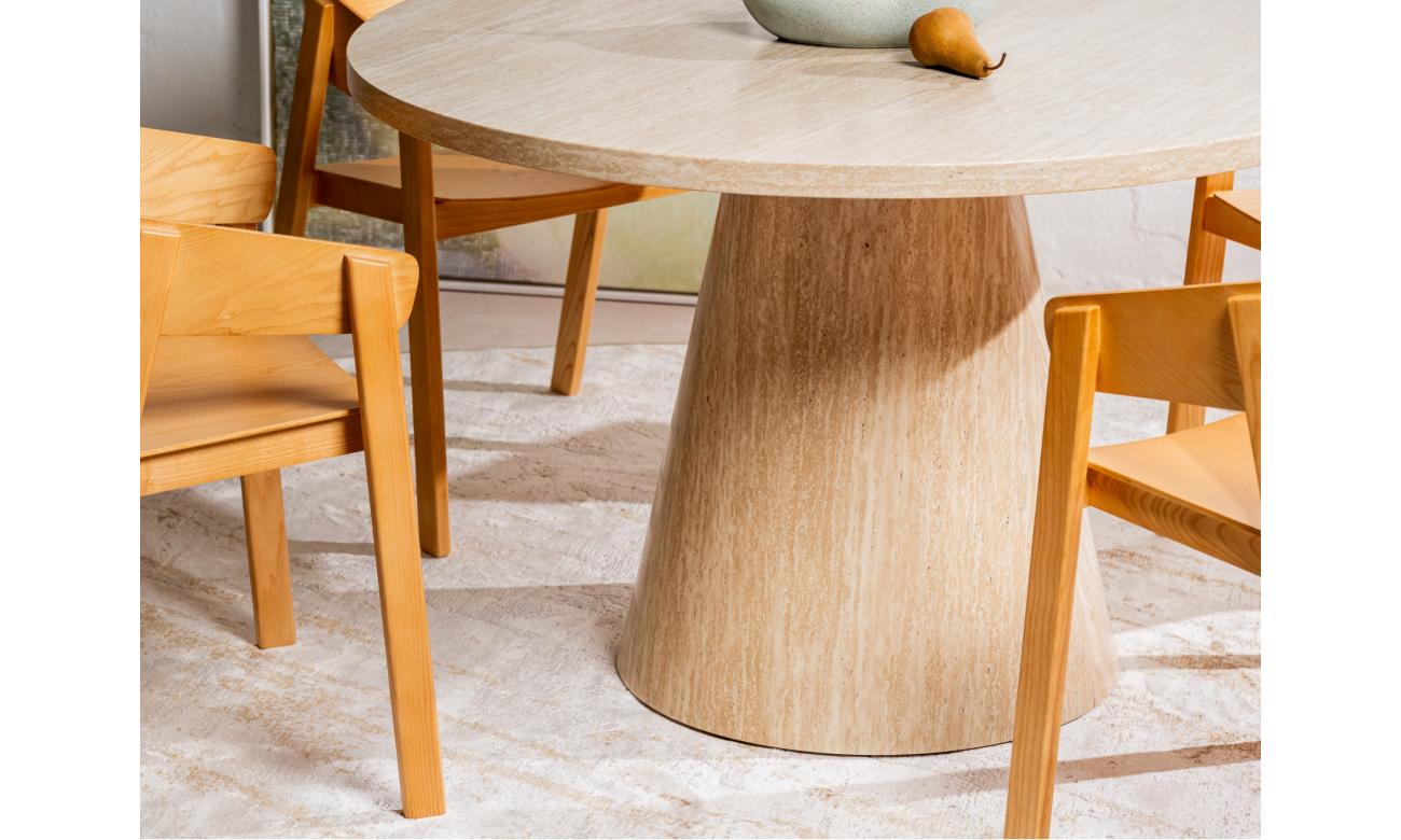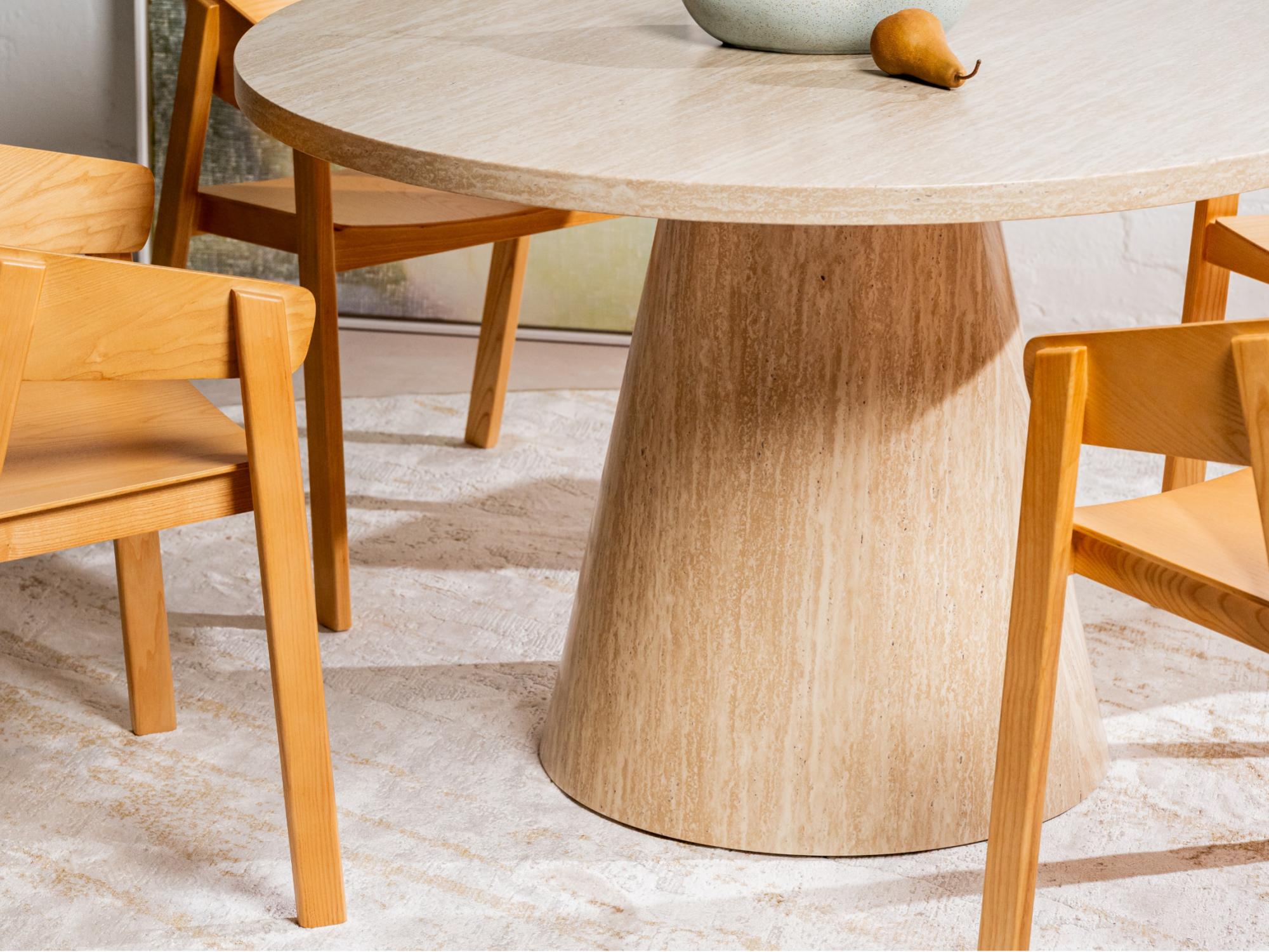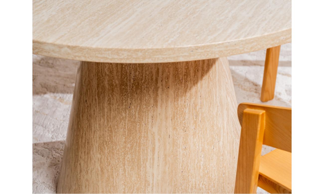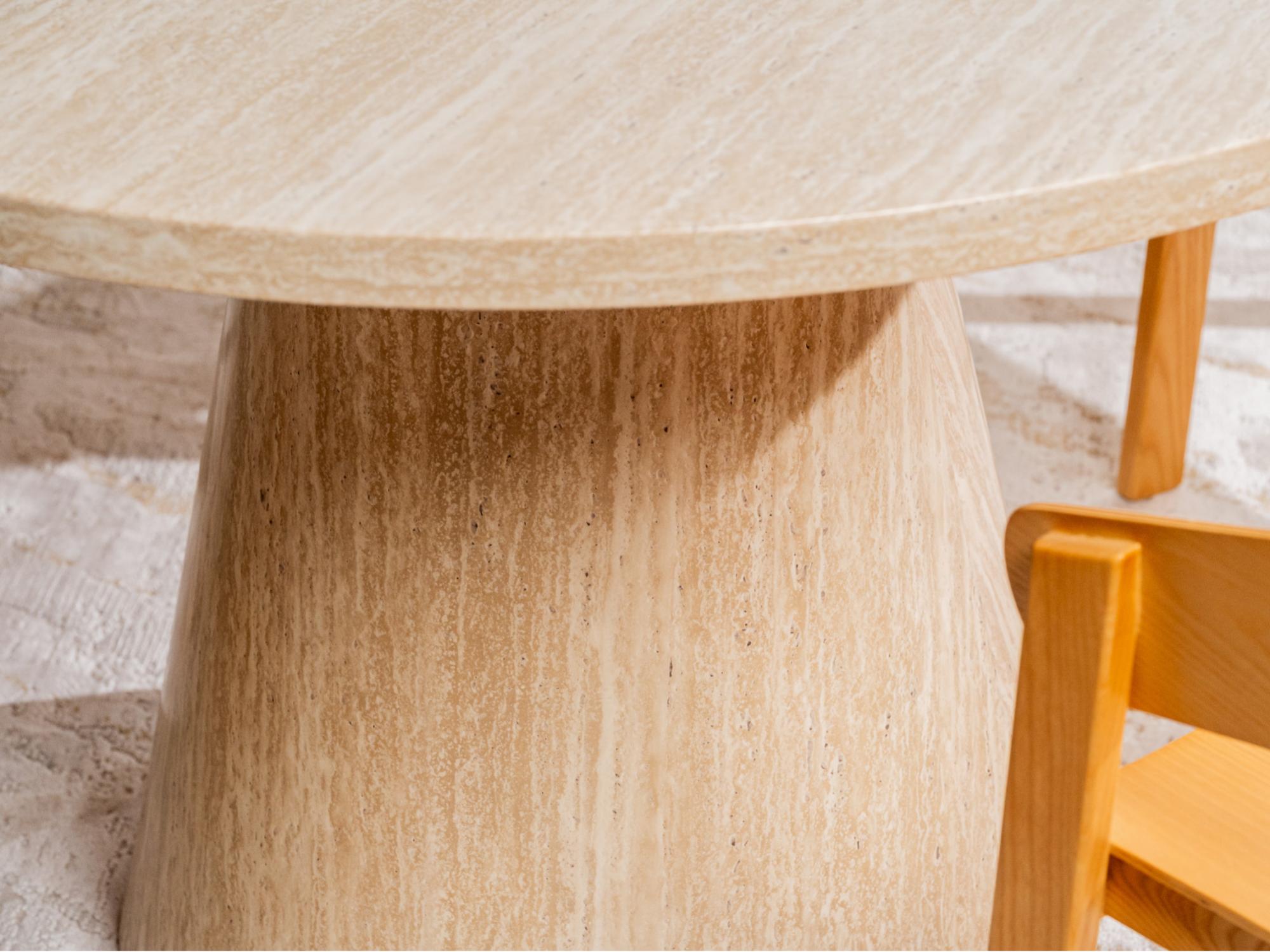The Tessa Dining Table brings classy modern style to your home. Perfect for a dining area or breakfast nook, this round table features a beautiful column in the center for added visual interest. With its unique travertine look, you'll love how this elegant piece adds to any decor style. The stone featured finish ensures gives the table an overall high-end look and feel. Enjoy hosting your family and friends at your home with the stylish Tessa Dining Table.
