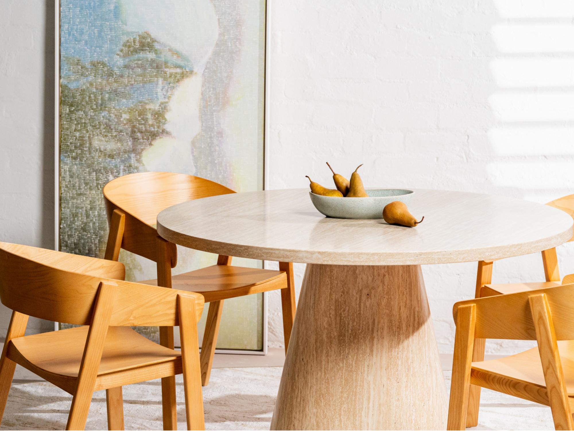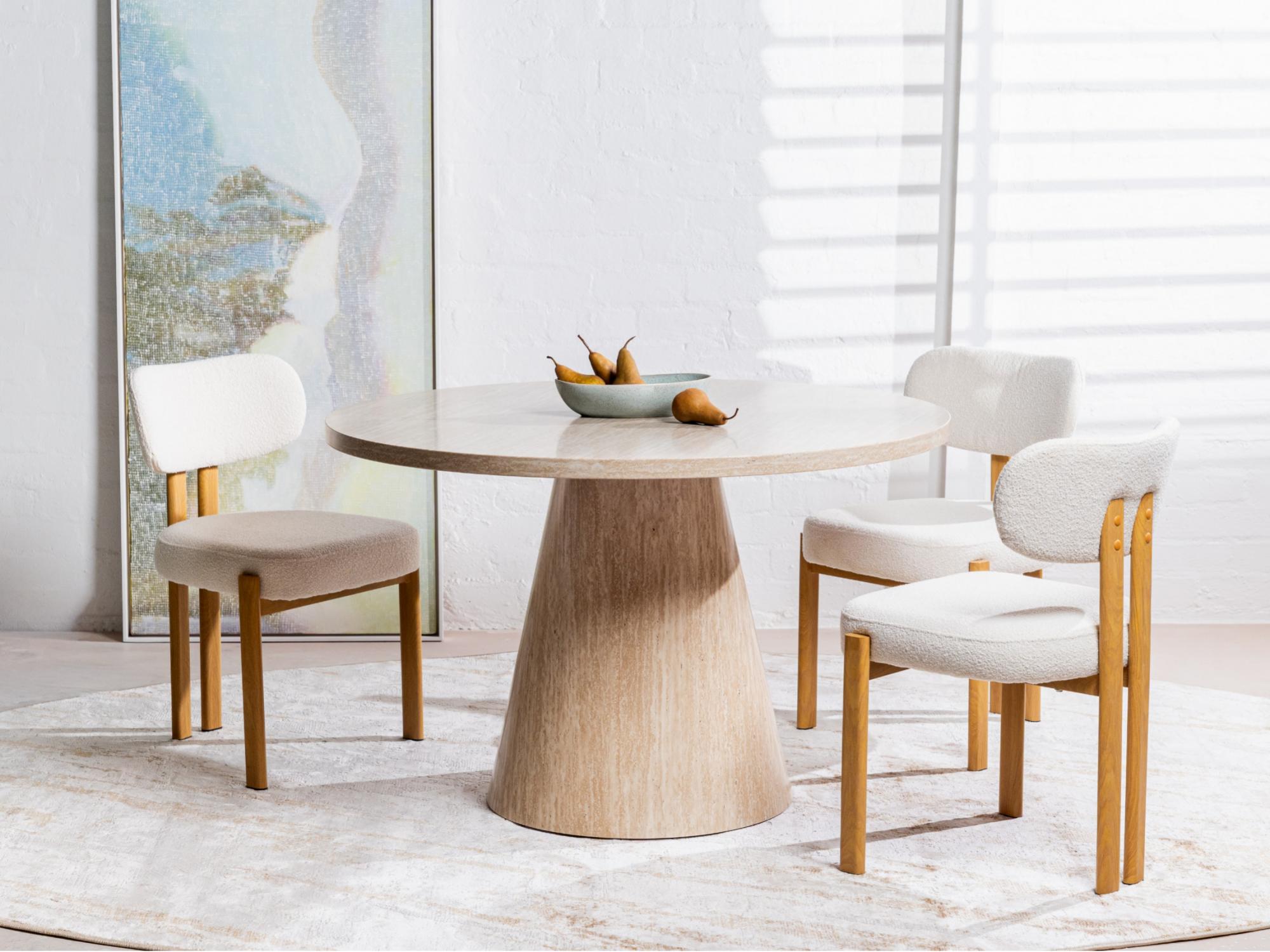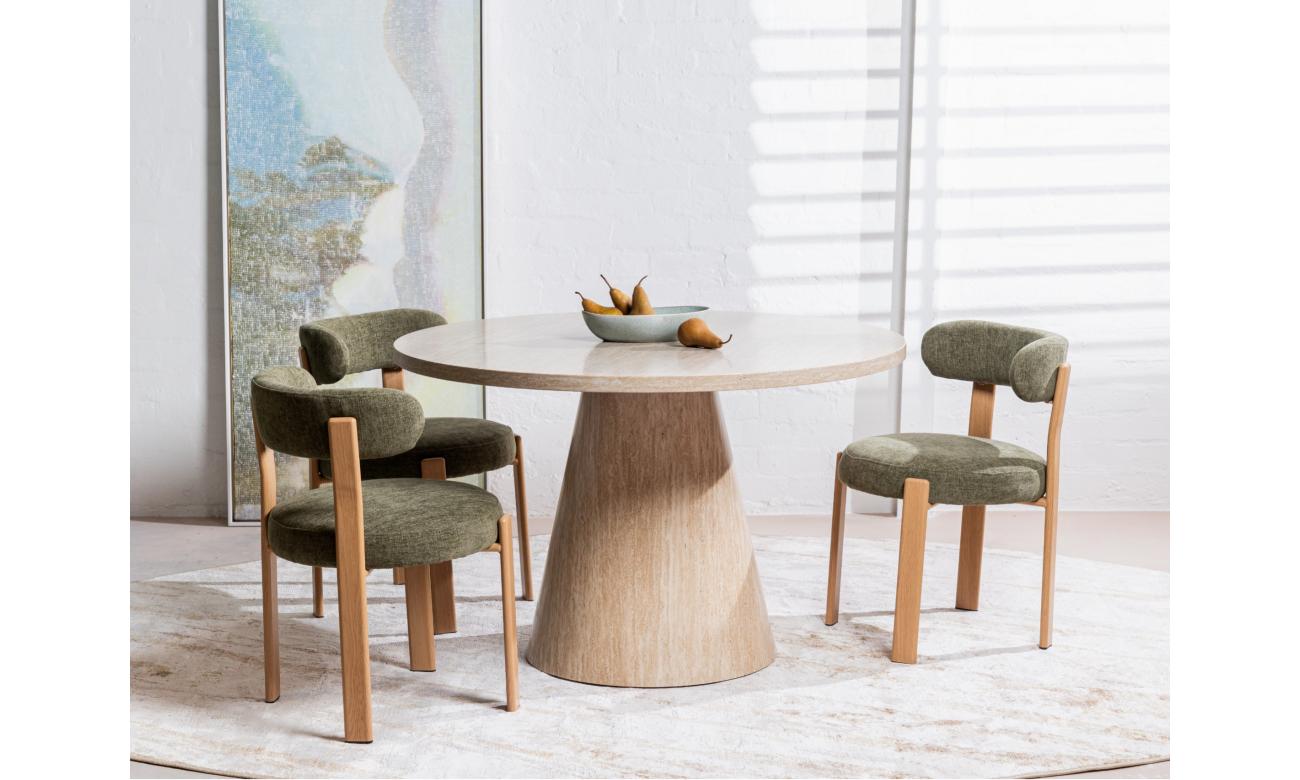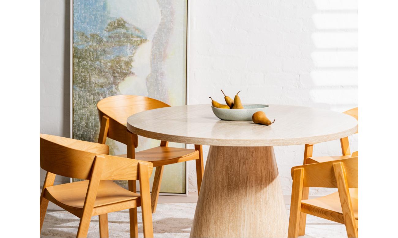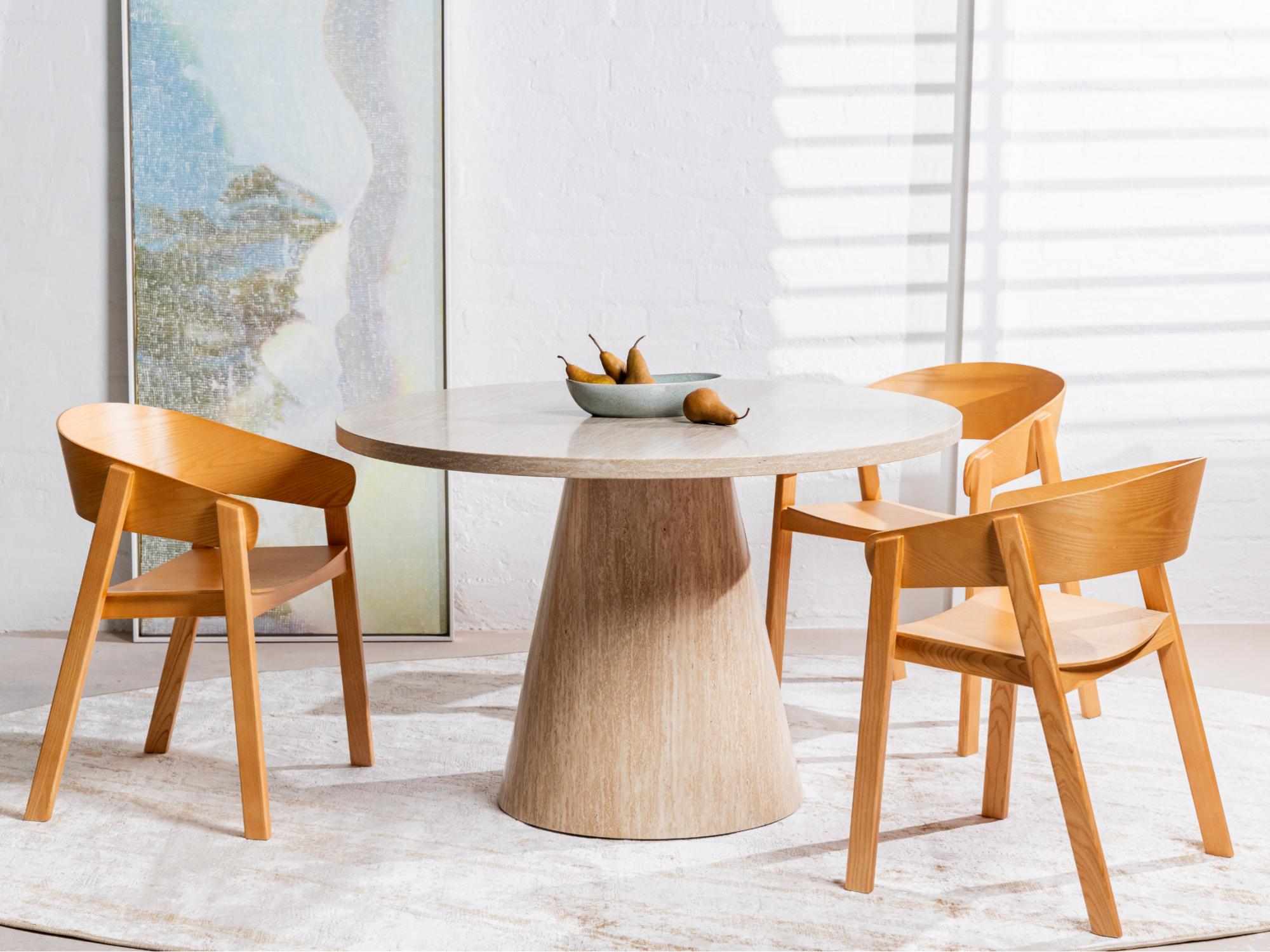 The Tessa Dining Table brings classy modern style to your home. Perfect for a dining area or breakfast nook, this round table features a beautiful column in the center for added visual interest. With its unique travertine look, you'll love how this elegant piece adds to any decor style. The stone featured finish ensures gives the table an overall high-end look and feel. Enjoy hosting your family and friends at your home with the stylish Tessa Dining Table.