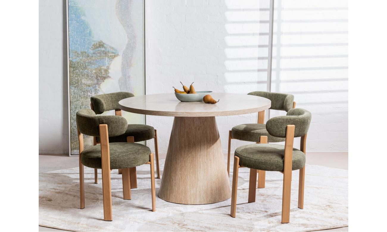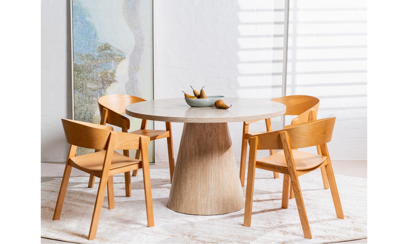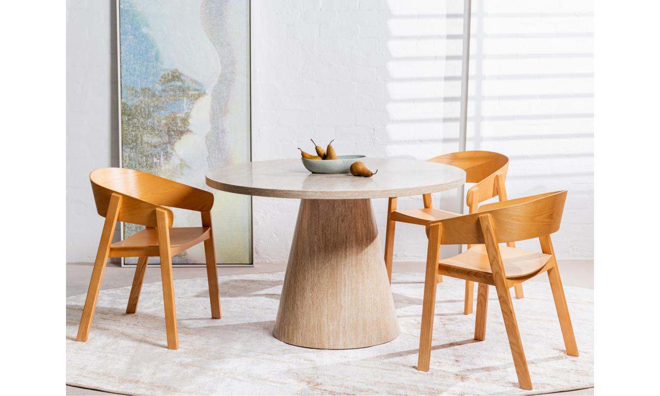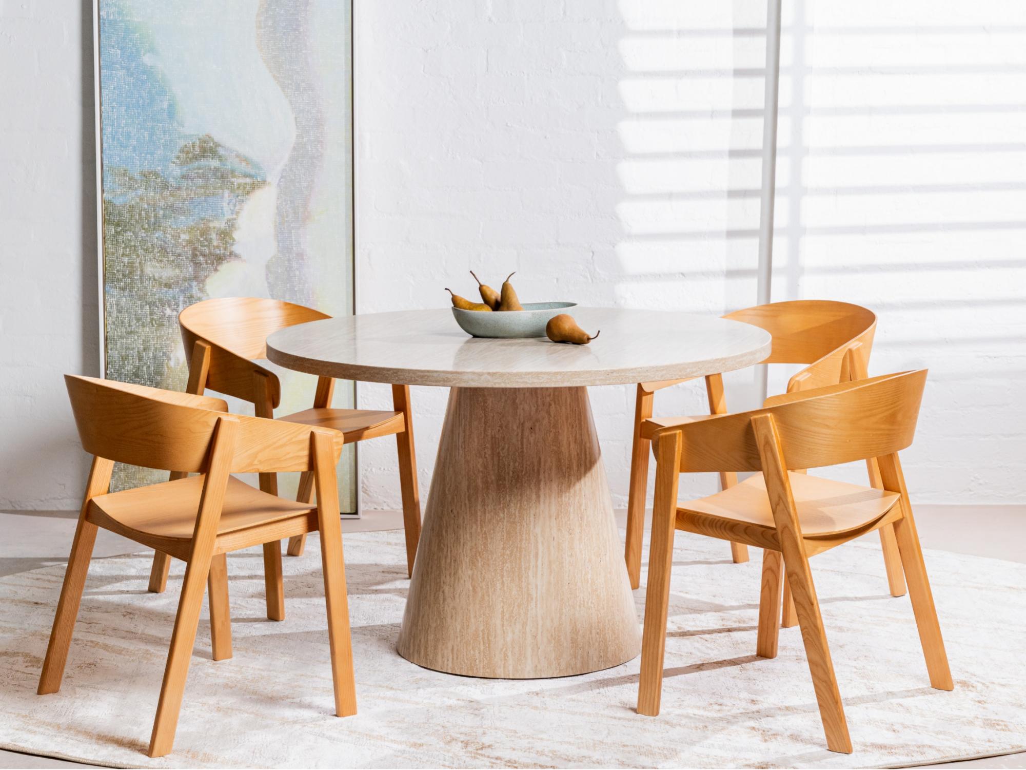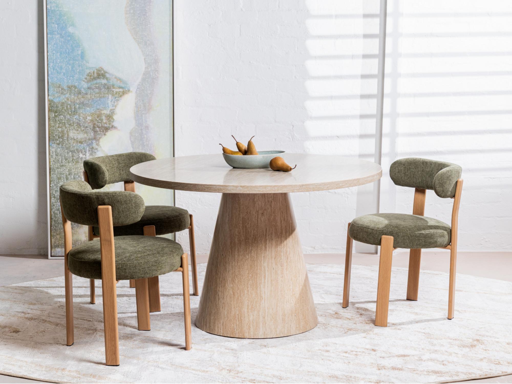 The Tessa Dining Table brings classy modern style to your home. Perfect for a dining area or breakfast nook, this round table features a beautiful column in the center for added visual interest. With its unique travertine look, you'll love how this elegant piece adds to any decor style. The stone featured finish ensures gives the table an overall high-end look and feel. Enjoy hosting your family and friends at your home with the stylish Tessa Dining Table.